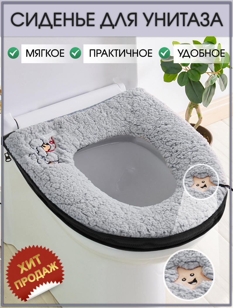Cиденье для унитаза, тёплый чехол на сиденье унитаза серый