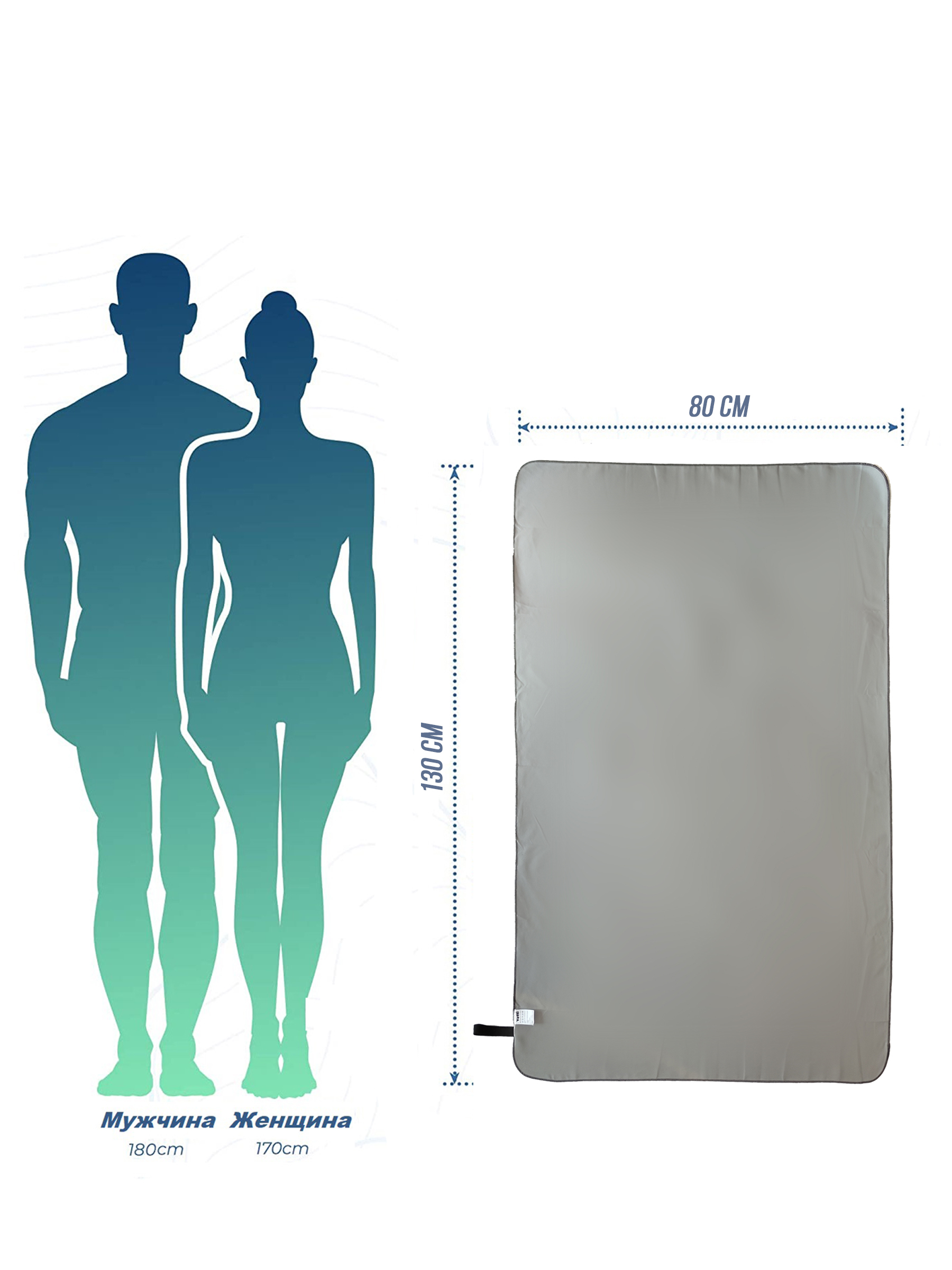 Полотенце из микрофибры для бассейна и кардио с сумкой 80*130 см серое