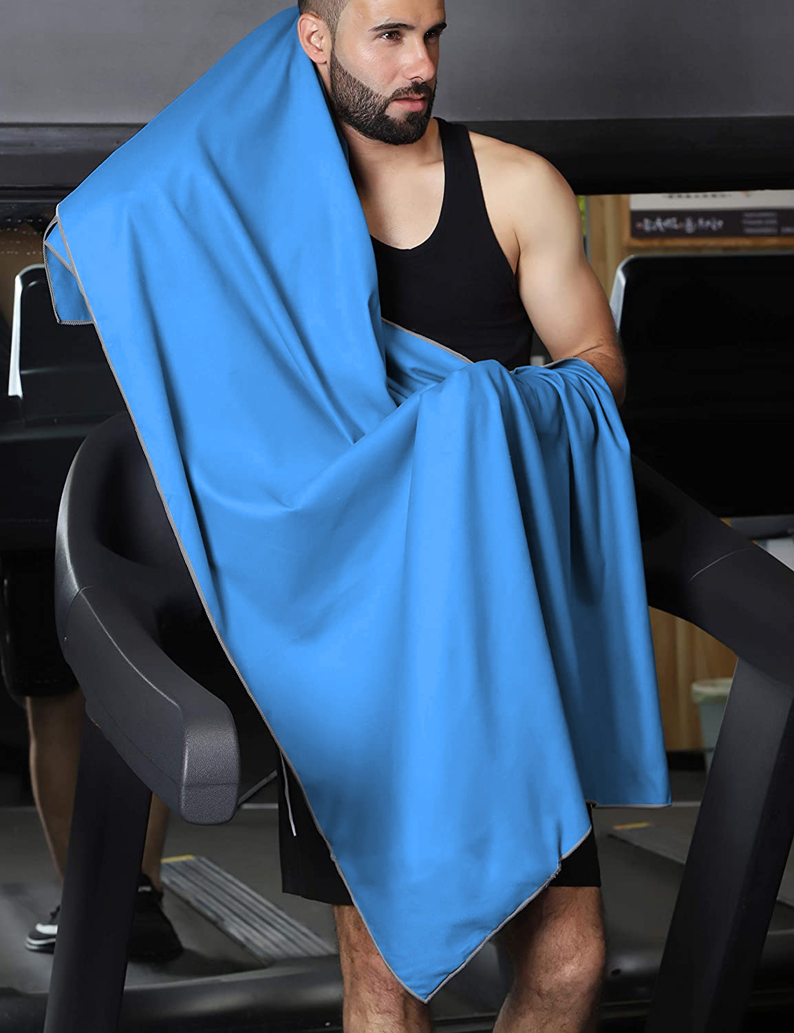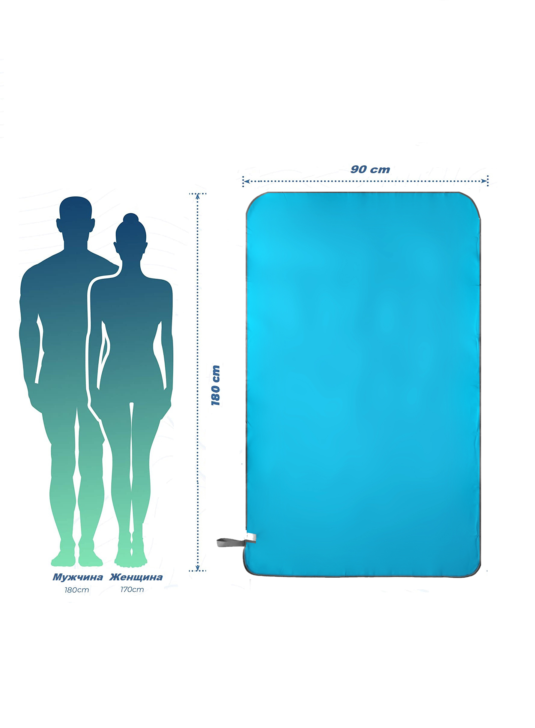 Полотенце спортивное из микрофибры для бассейна и кардио 180*90 см с сумкой светло-синее
