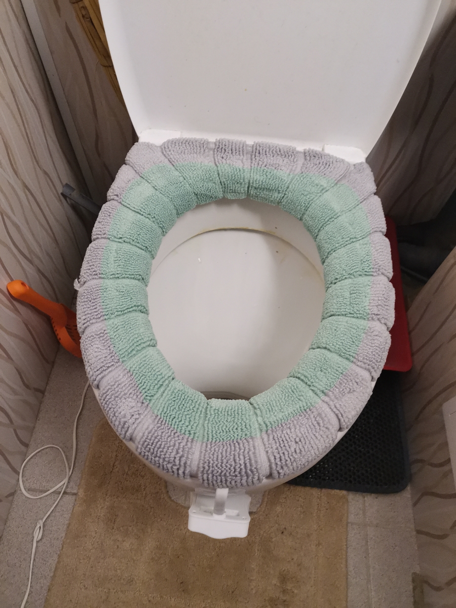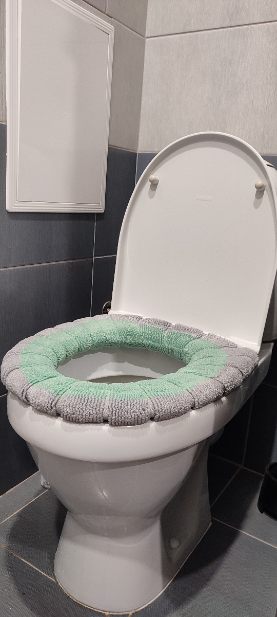 Cиденье для унитаза, тёплый чехол на сиденье унитаза серо-зелёный