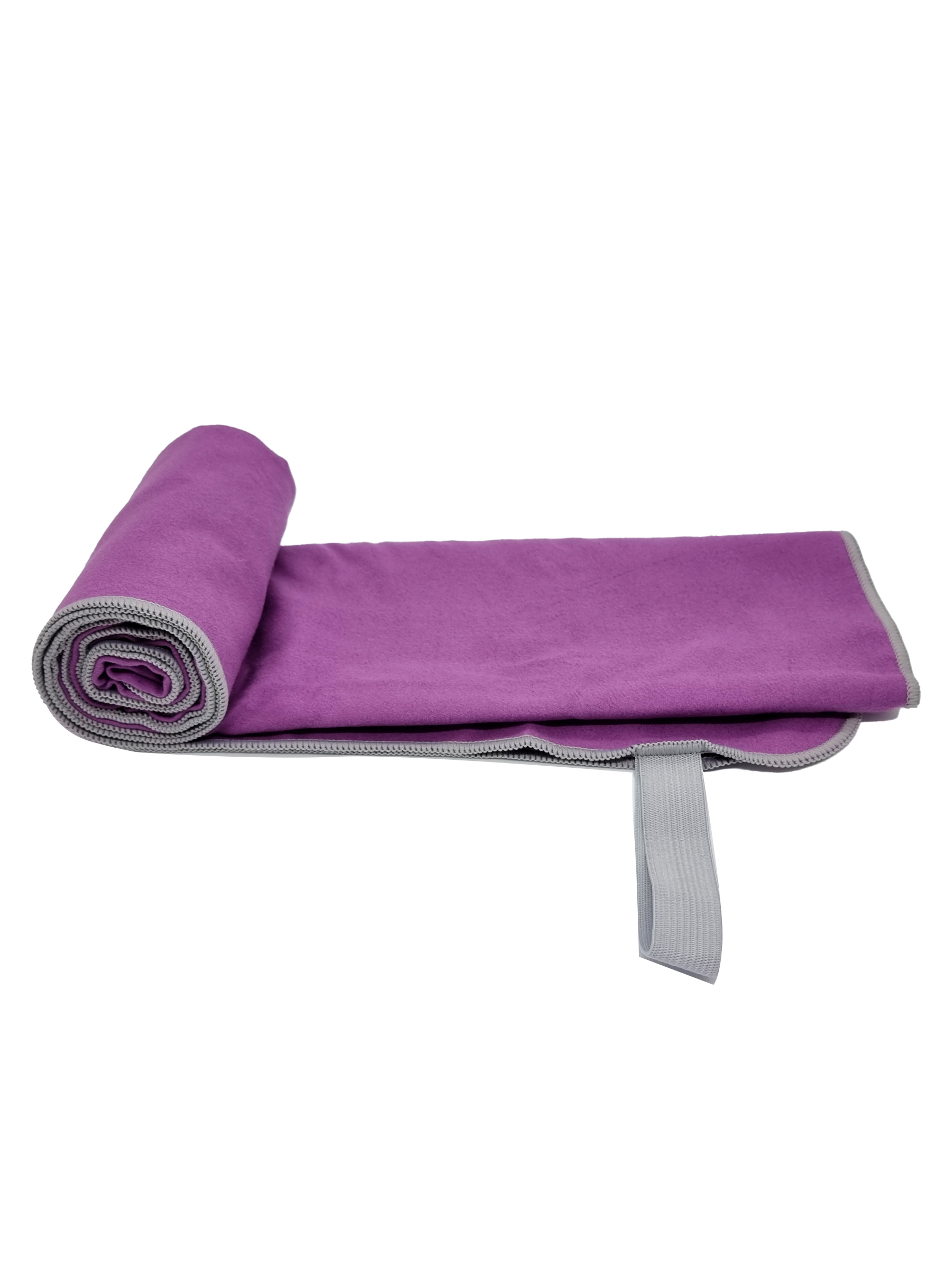 Полотенце спортивное из микрофибры для бассейна и кардио 100*50 см с сумкой фиолетово-серебристое