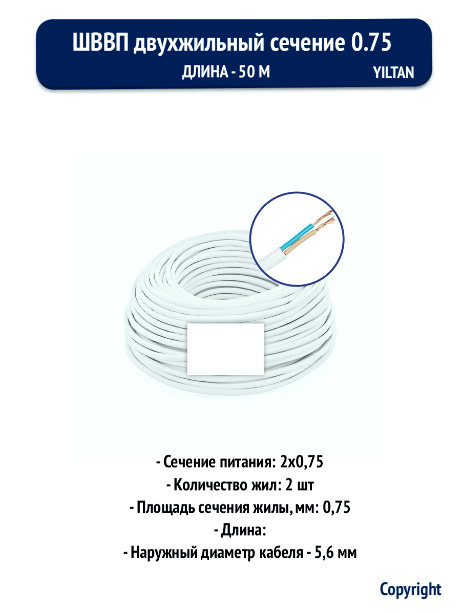 Электрический провод YILTAN-TEX ШВВП 2 x 0,75 мм² 1 мм, 50 м