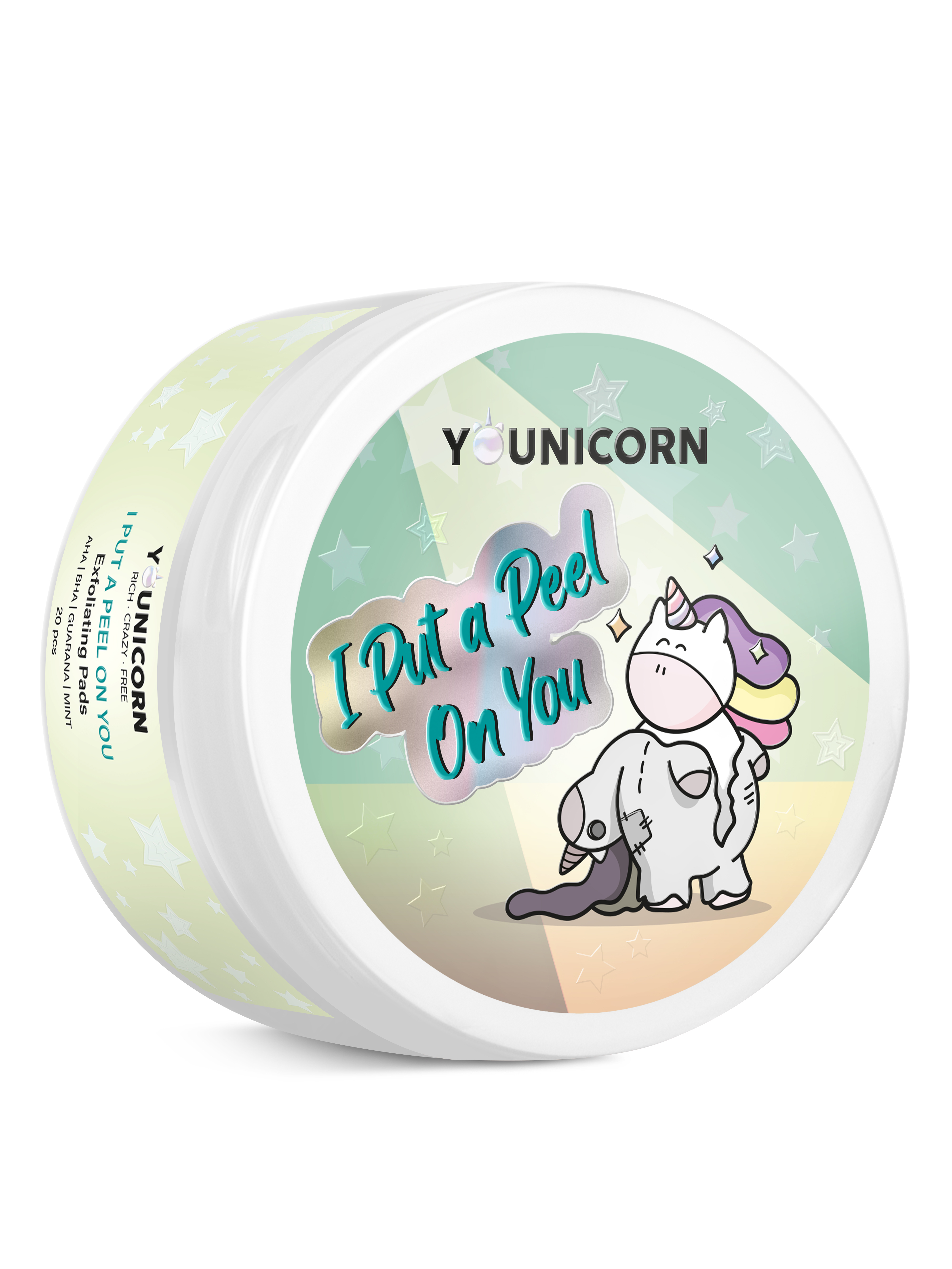YOUNICORN Отшелушивающие пилинг-диски для лица против черных точек и прыщей I PUT A PEEL ON YOU, кислотный пилинг для лица, AHA, BHA кислоты, 20 шт