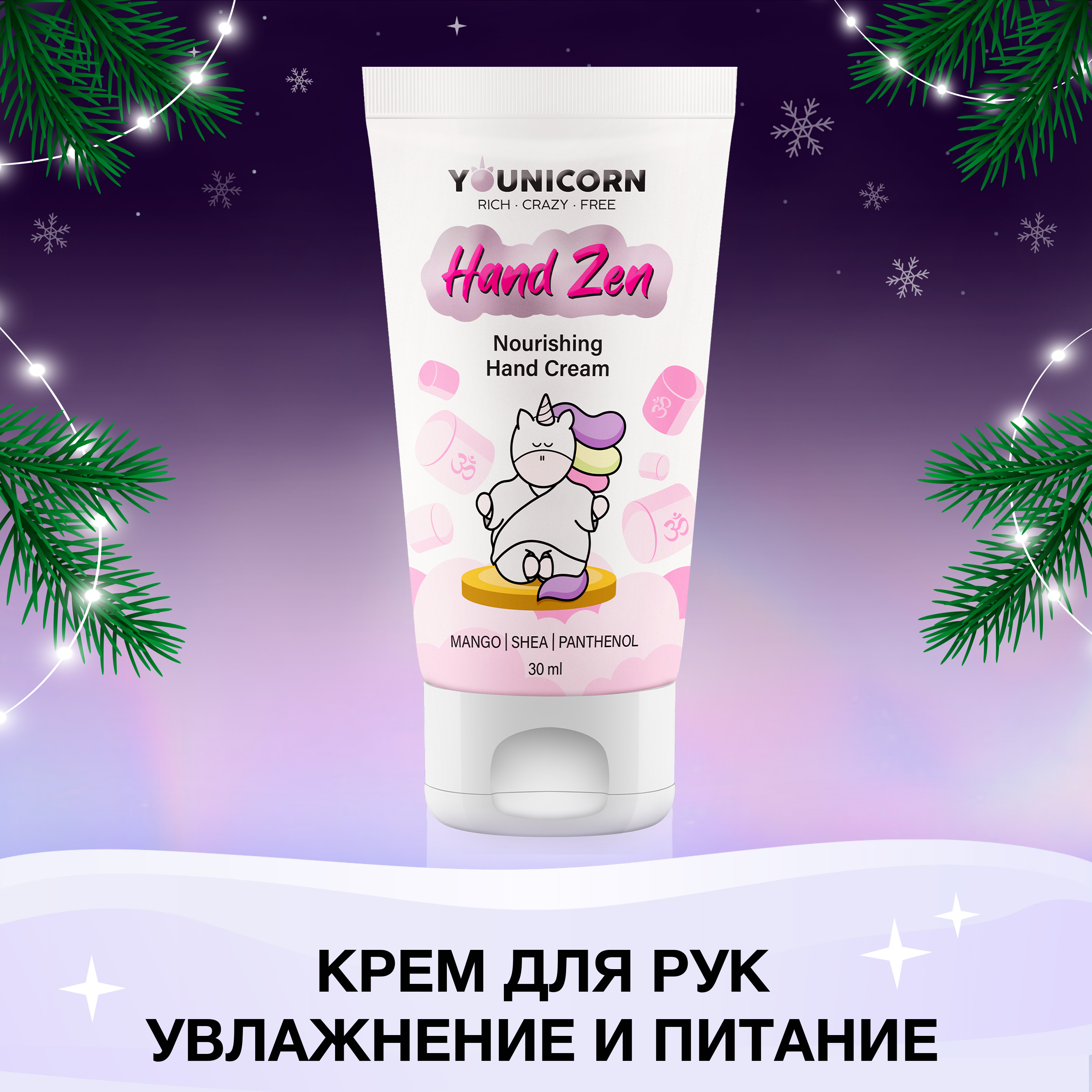 YOUNICORN Питательный, увлажняющий крем для рук с маслами ши, манго и пантенолом HAND ZEN, 30 мл