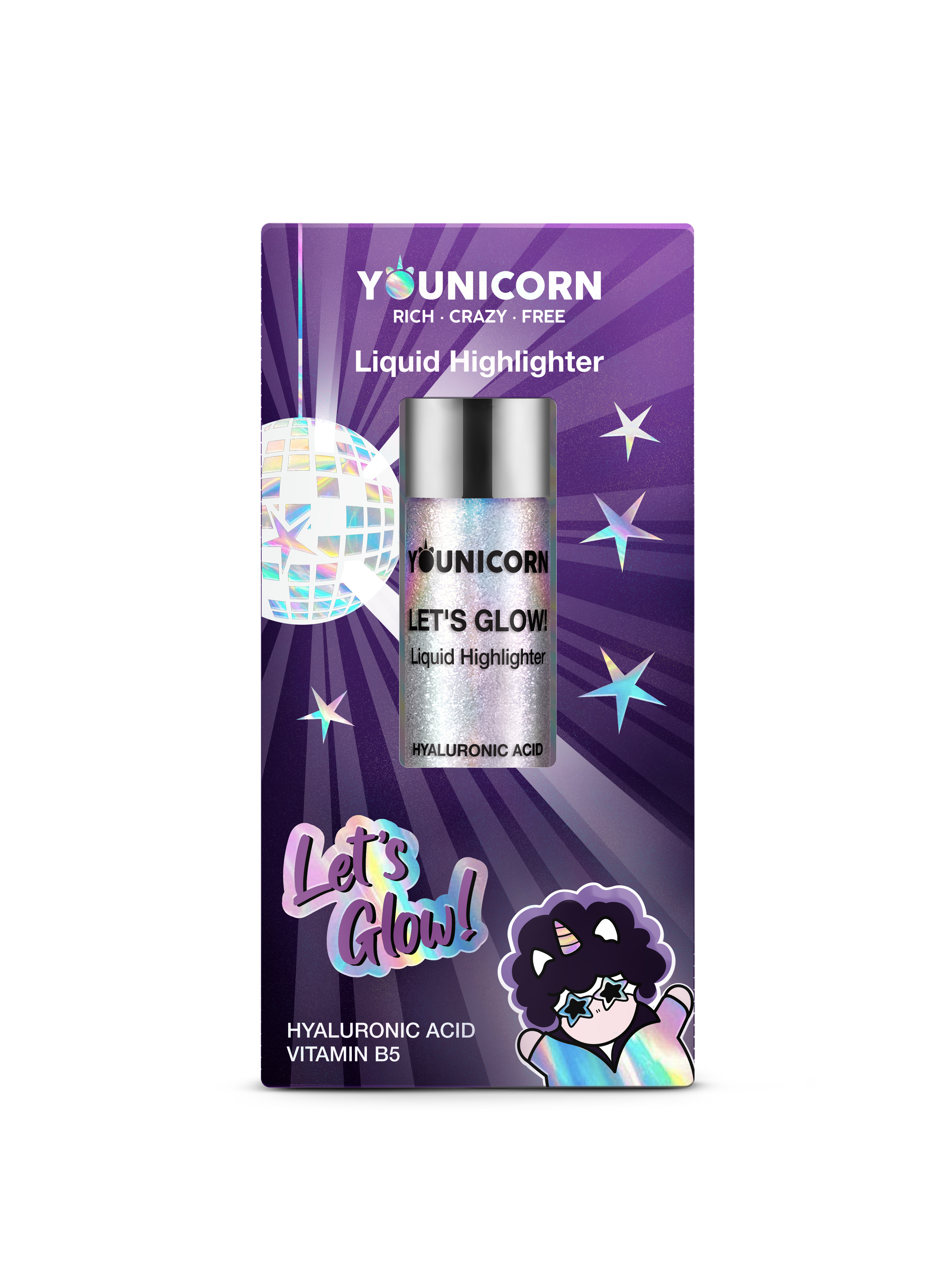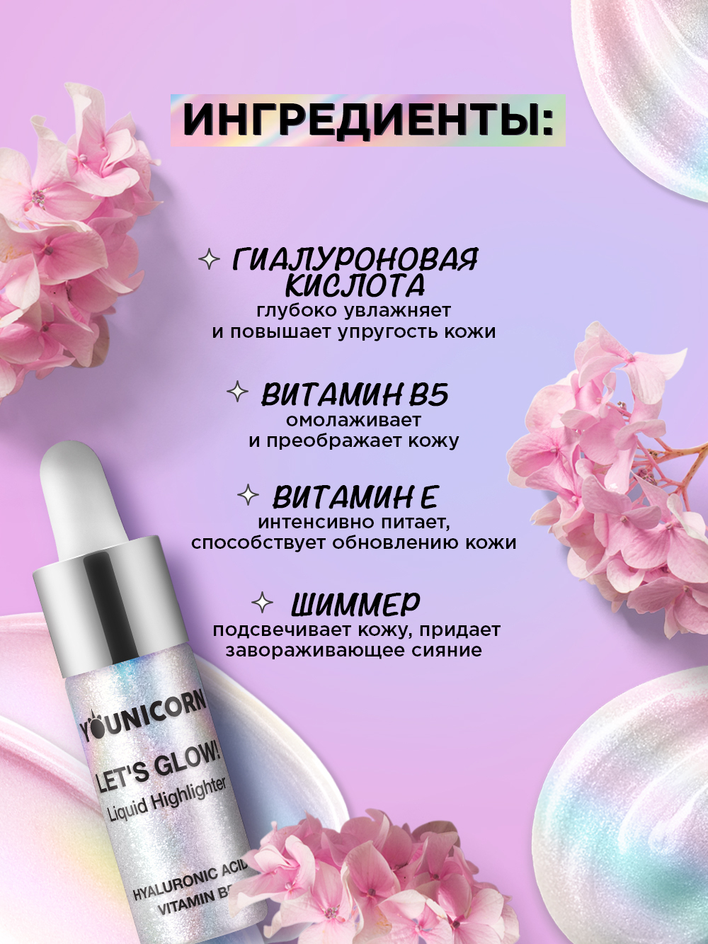 YOUNICORN Жидкий голографический хайлайтер для лица LET'S GLOW, с гиалуроновой кислотой и пантенолом, 5 мл