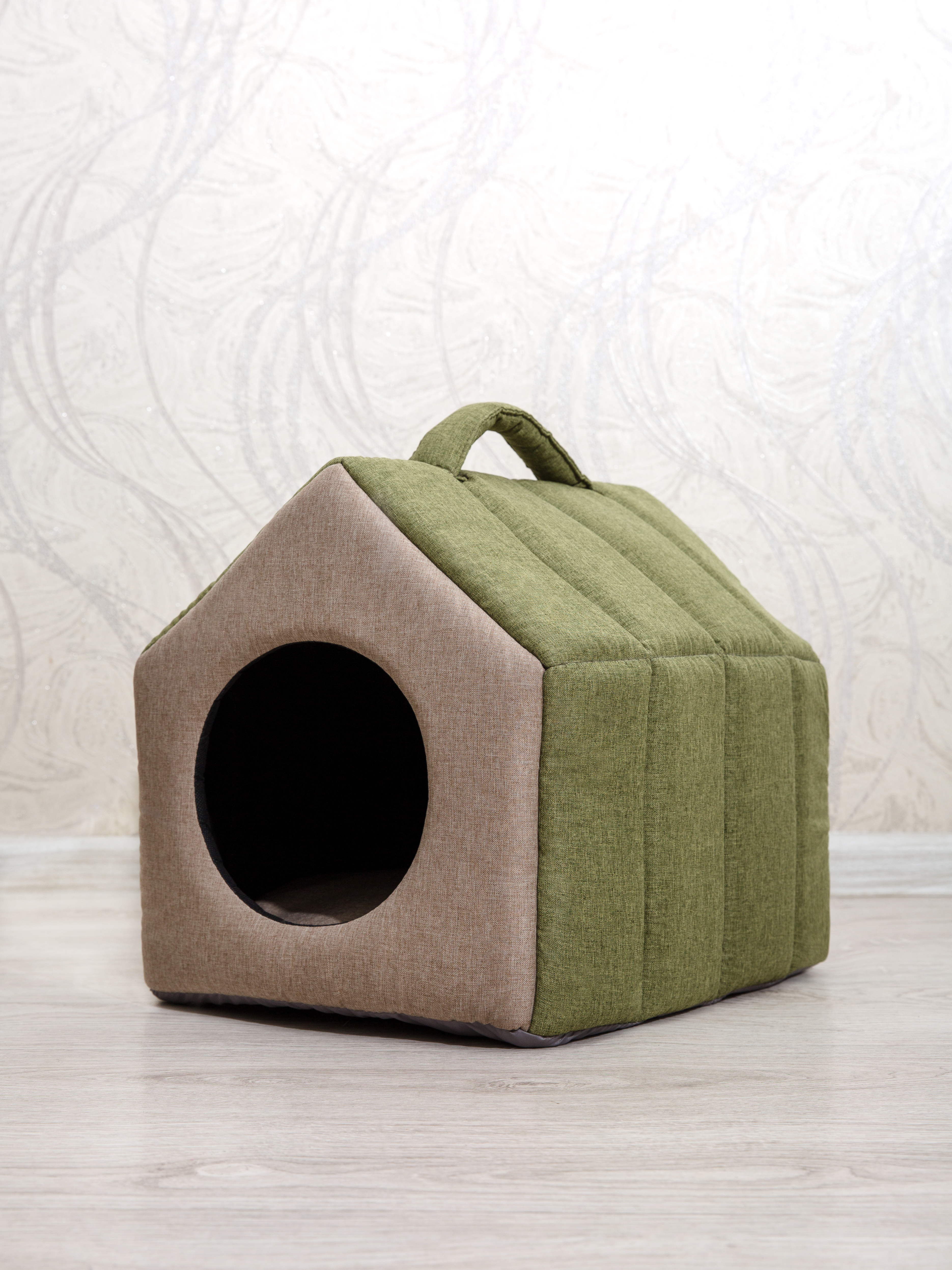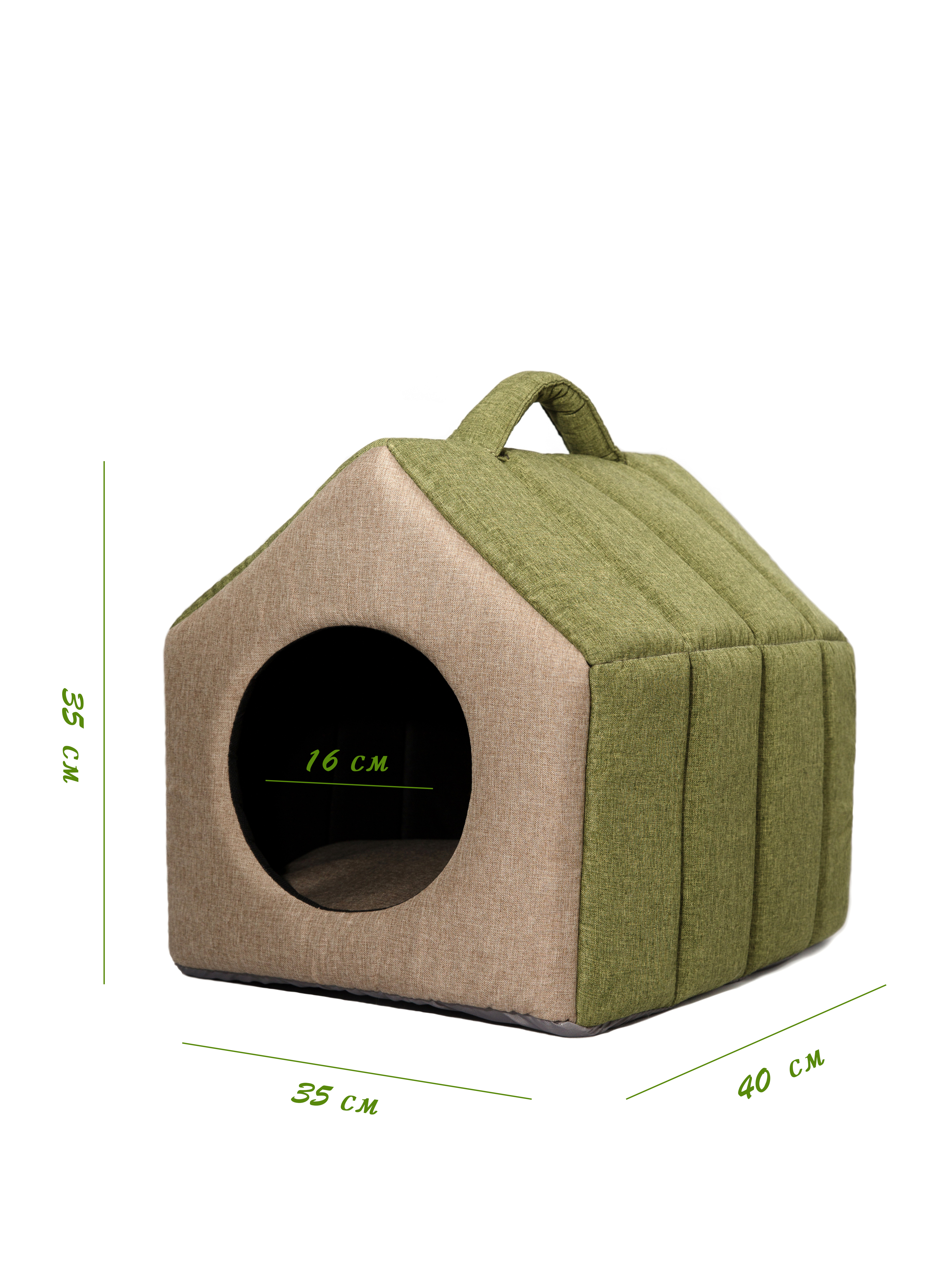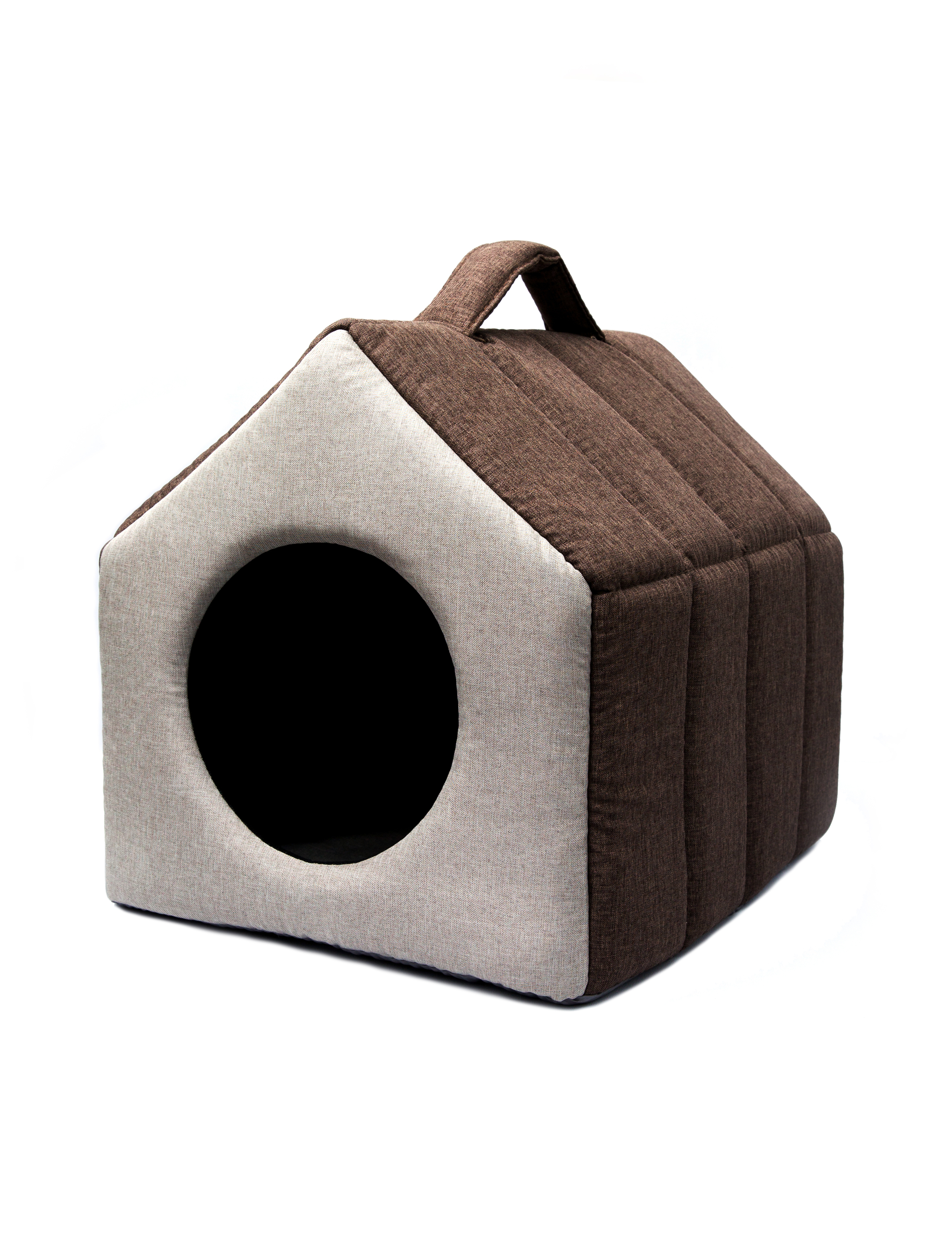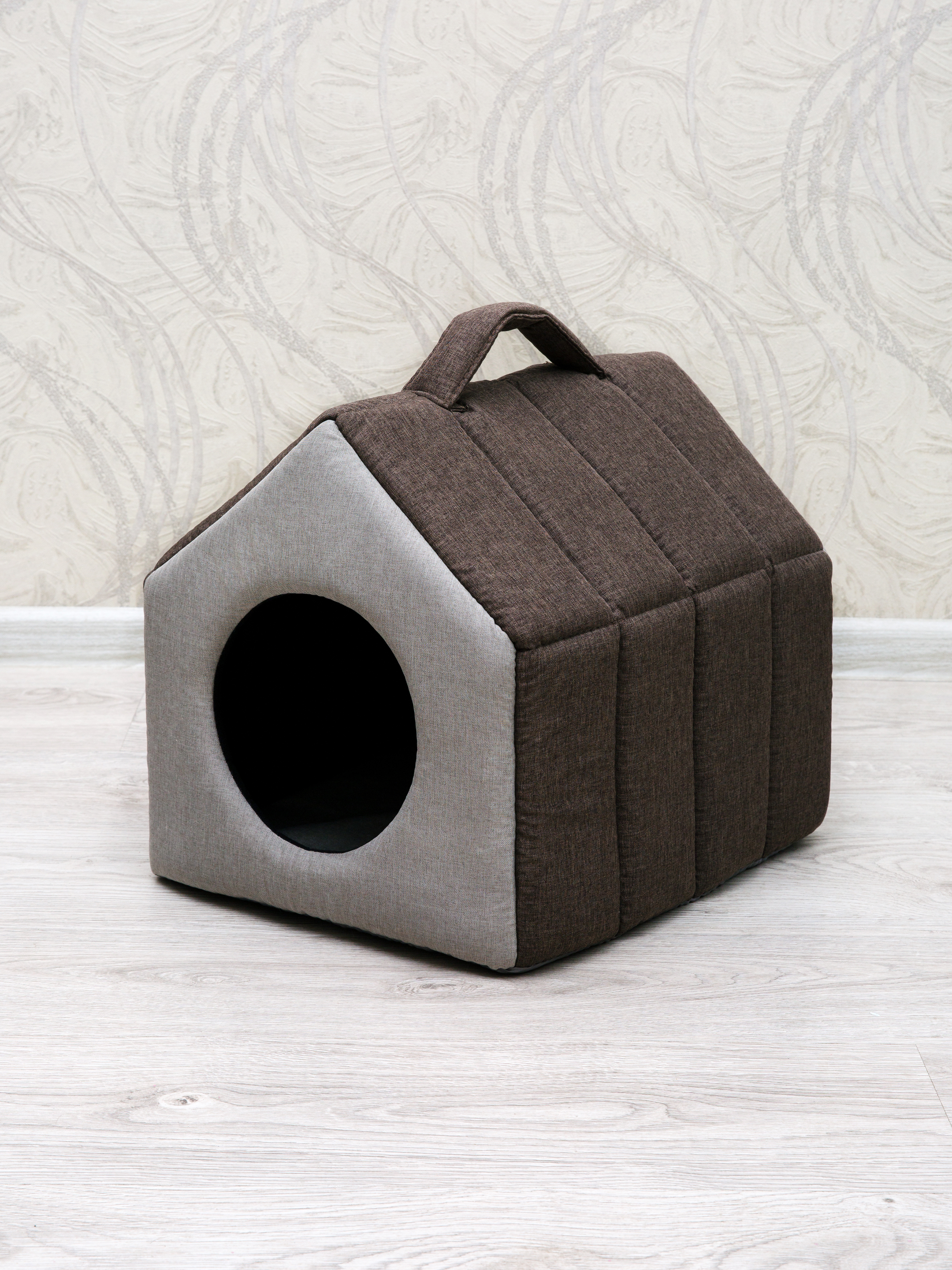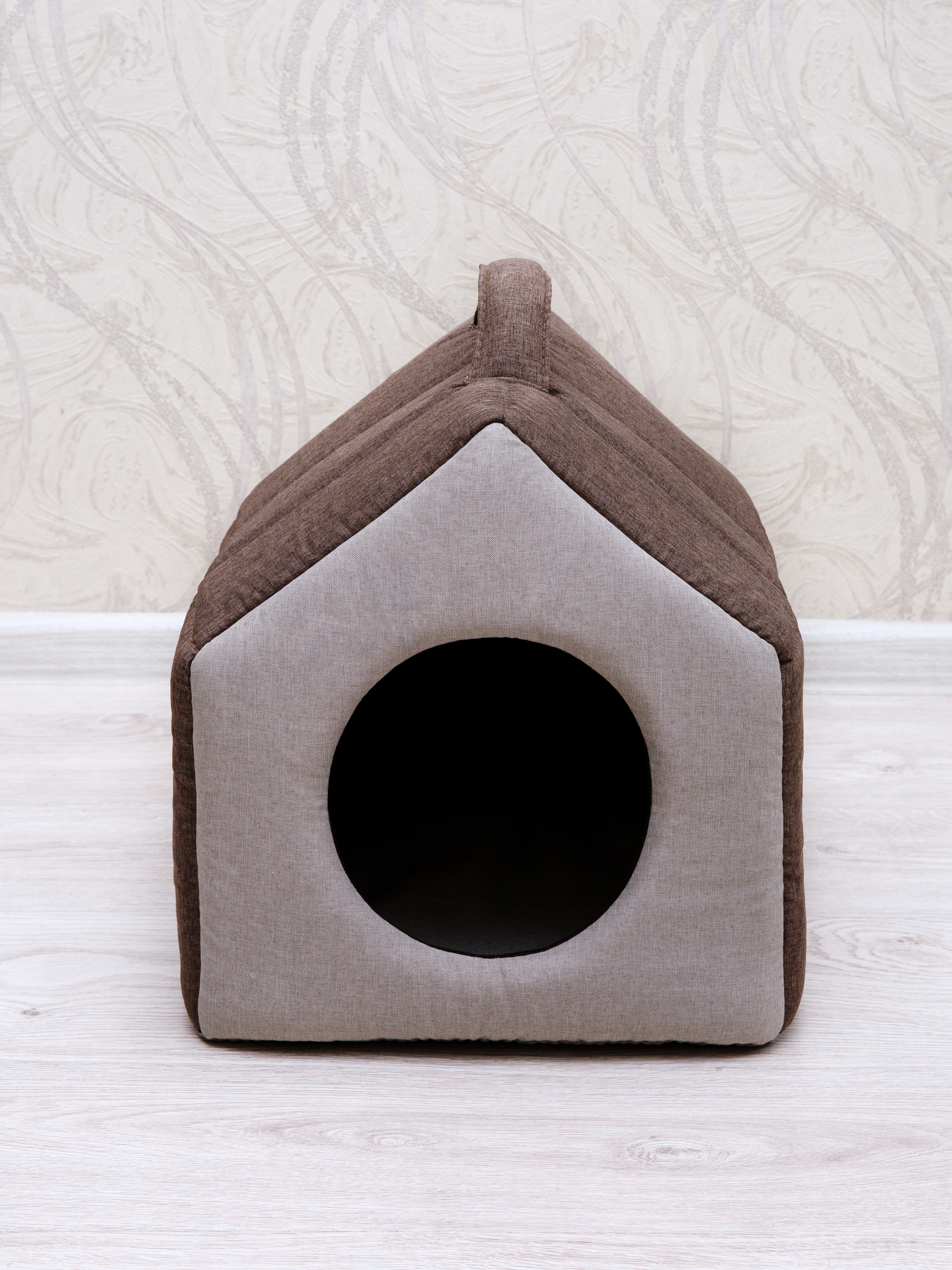 Мягкий домик для кошек, собак и животных с подушкой, 40х35х35см, коричневый, YUGA