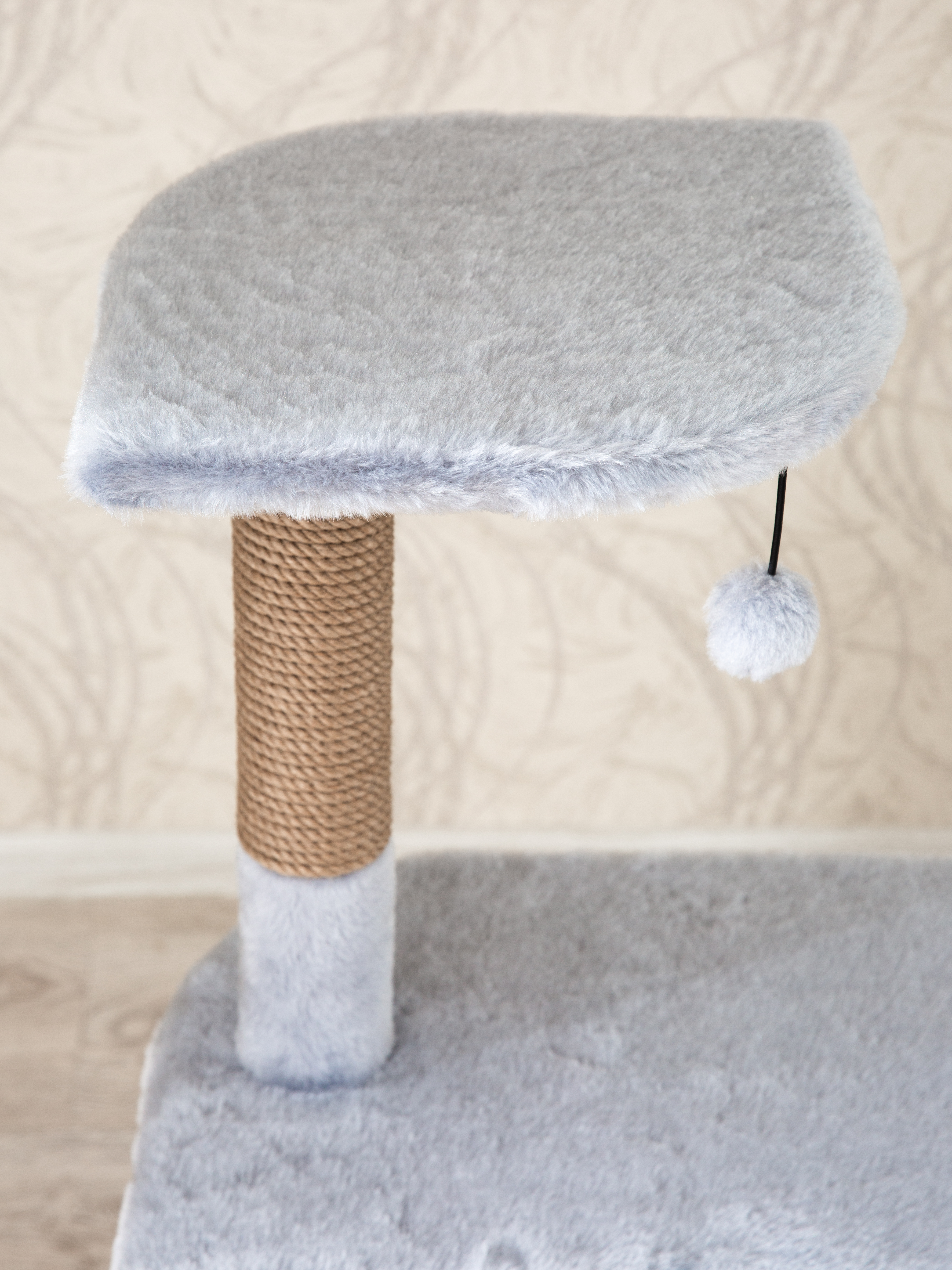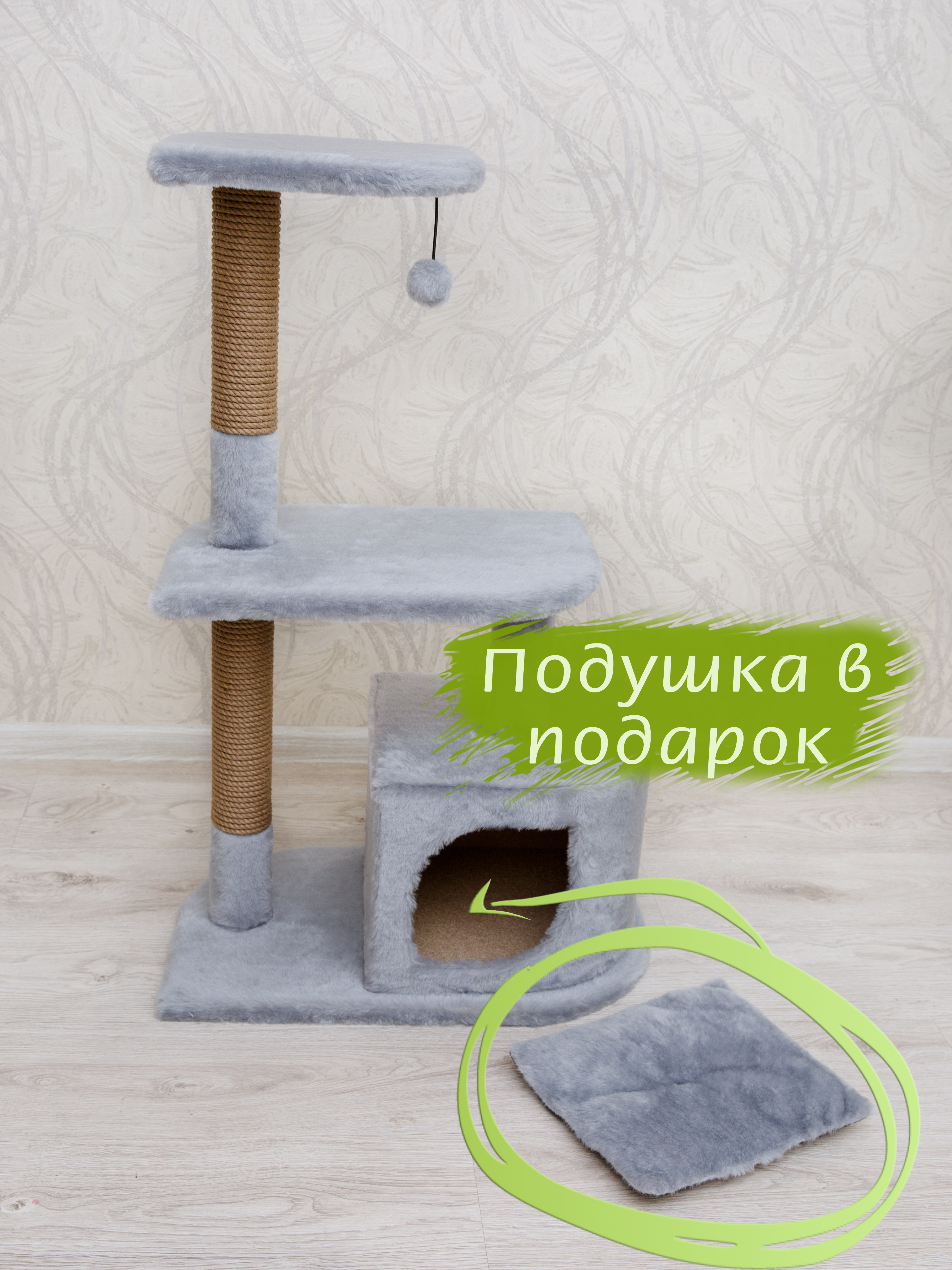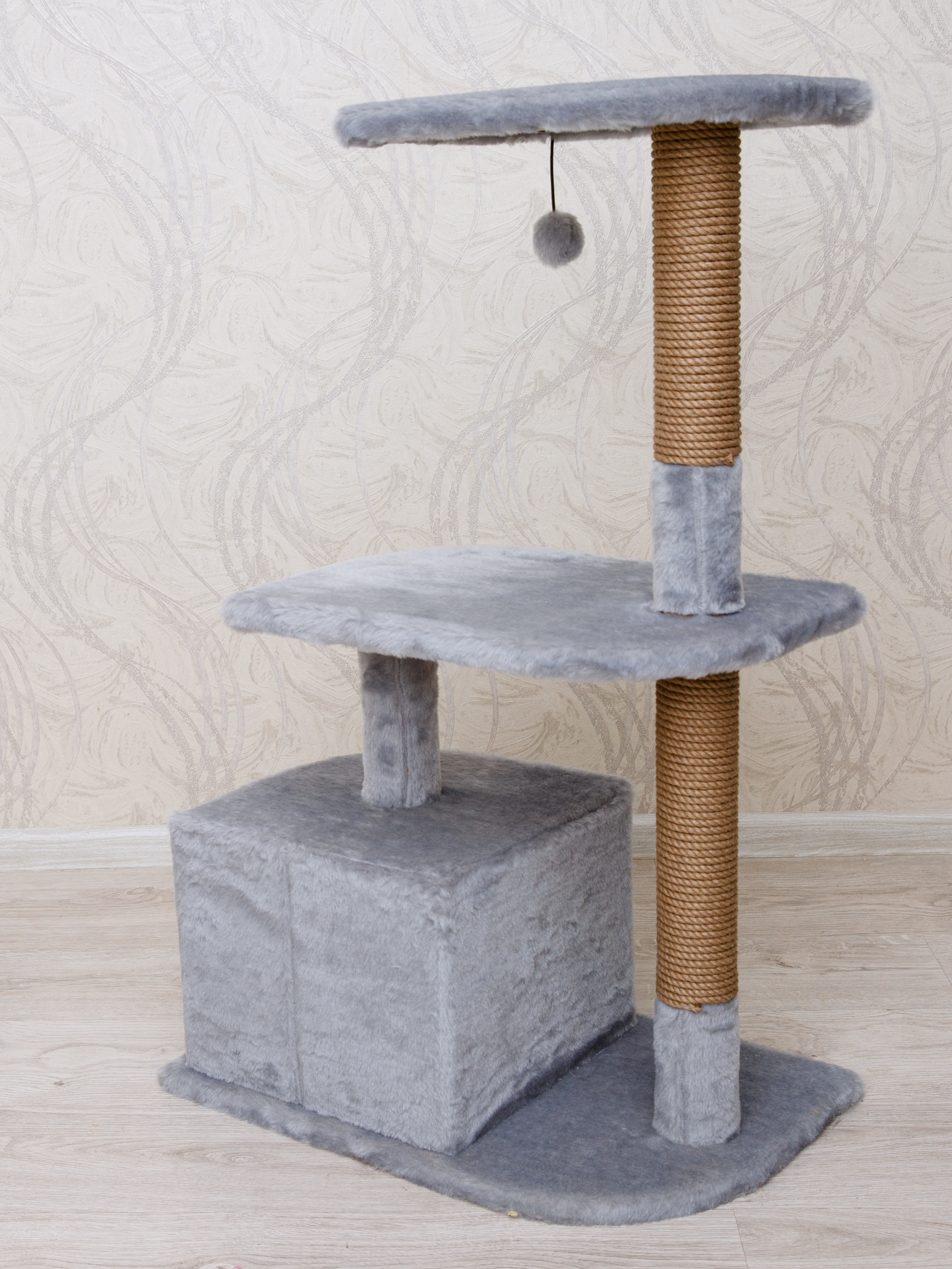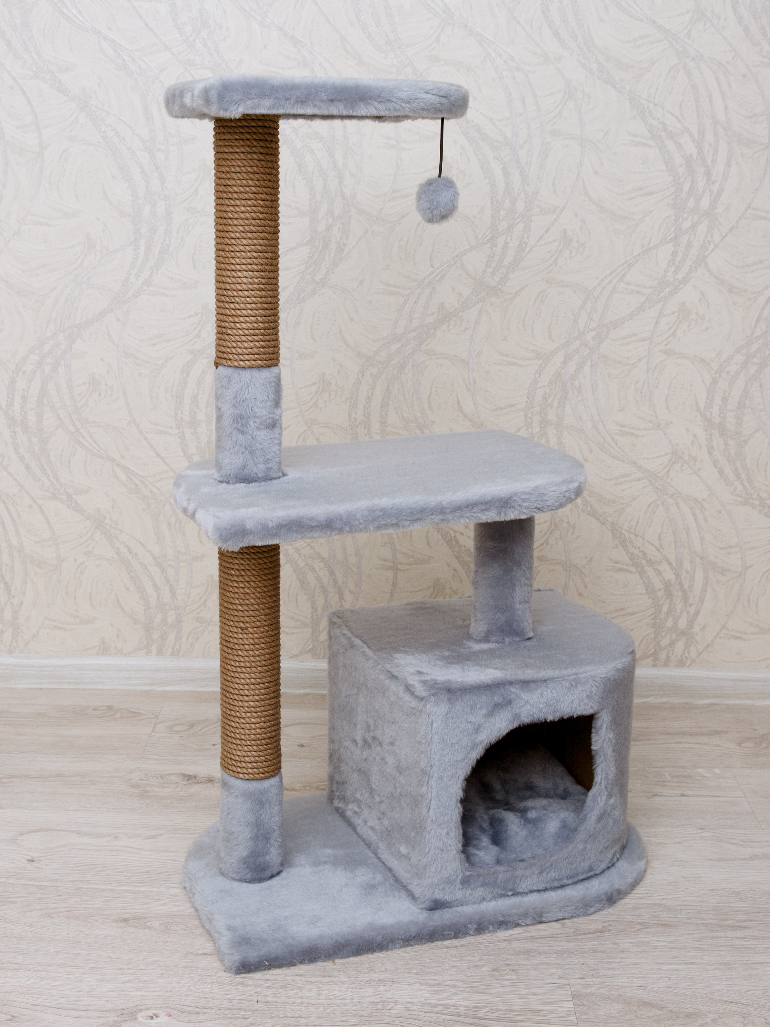 Когтеточка (игровой комплекс) для кошек с домиком, с лежанкой, с игрушкой 56х36х91см, серый, YUGA