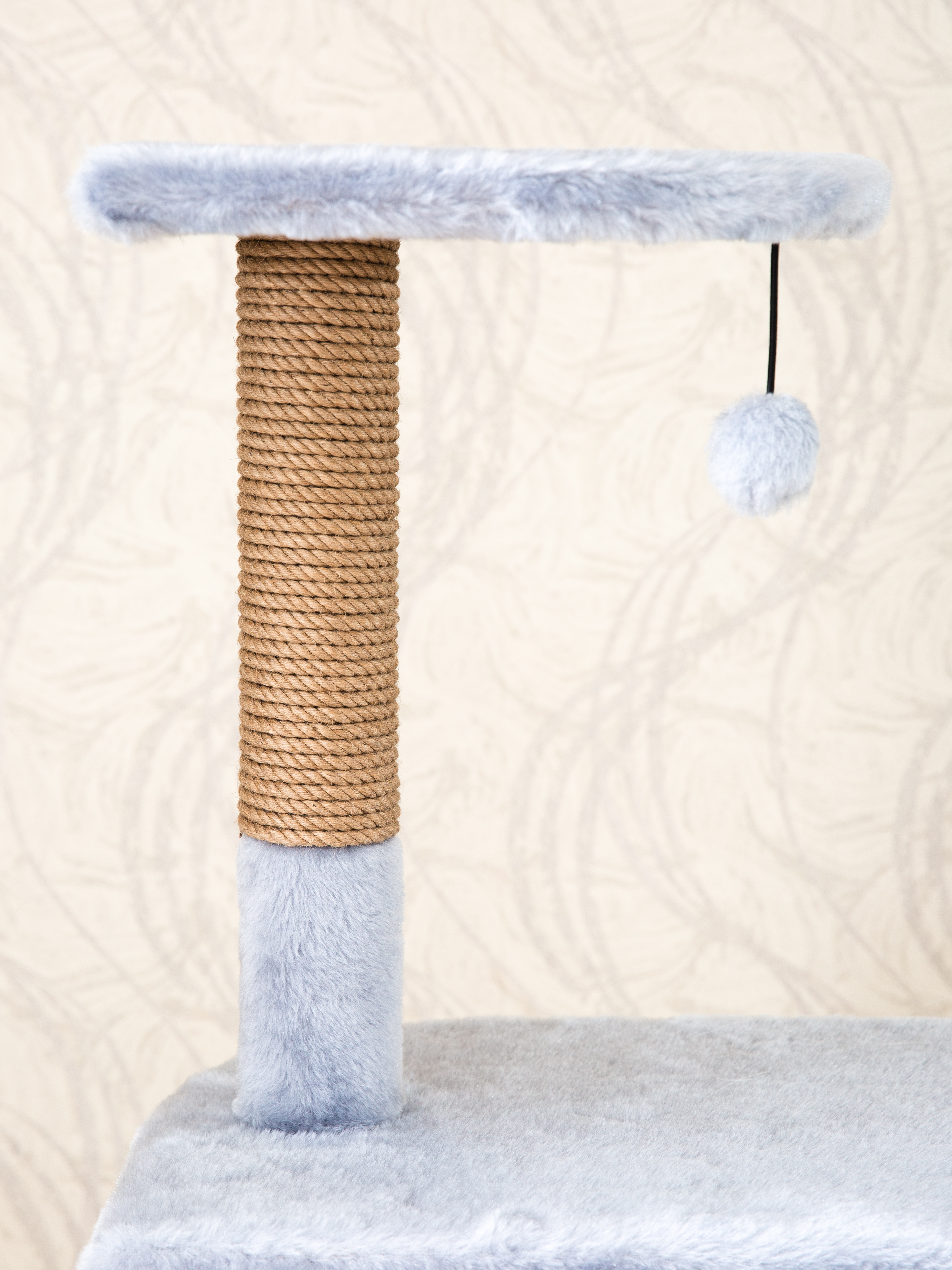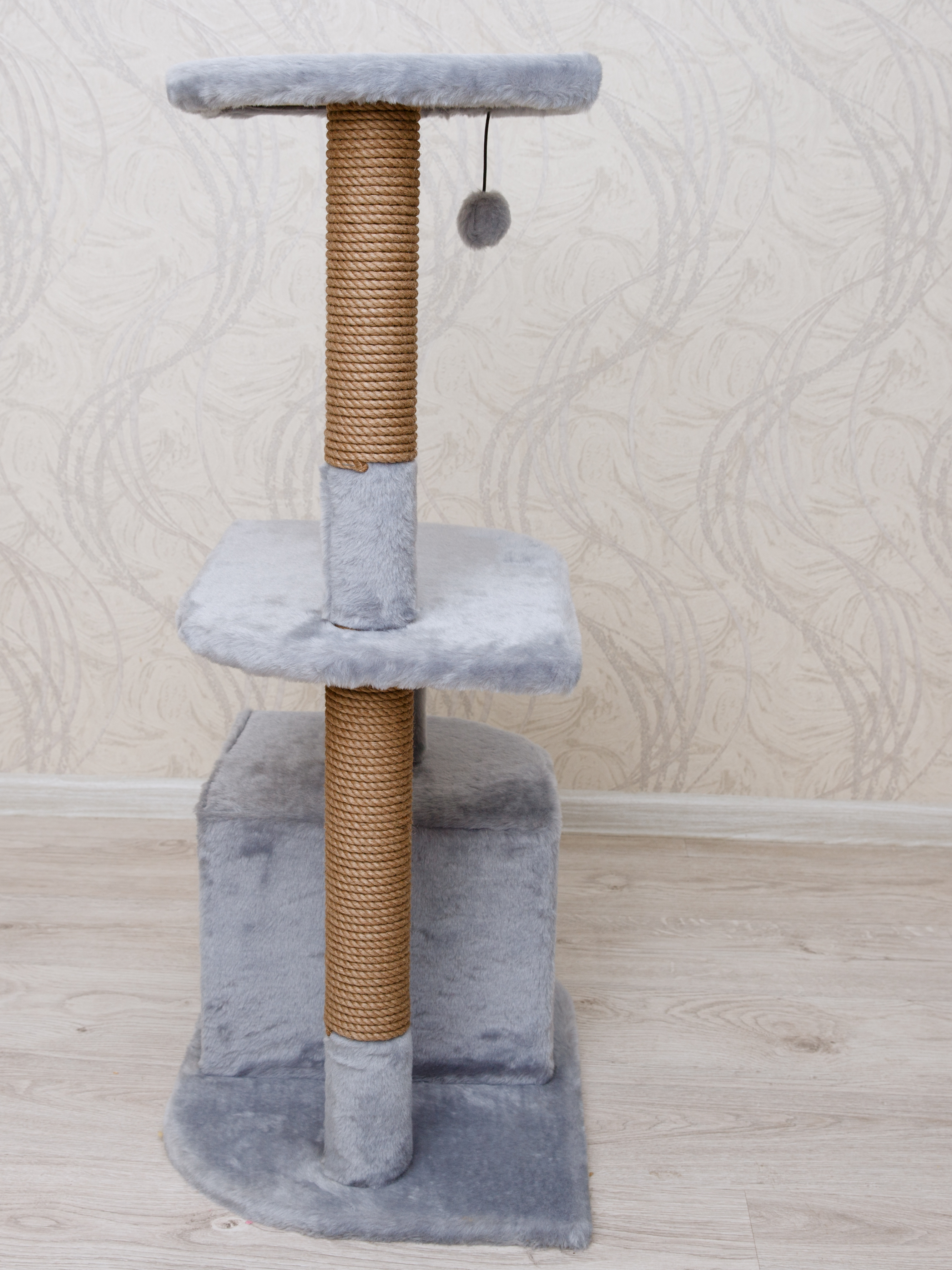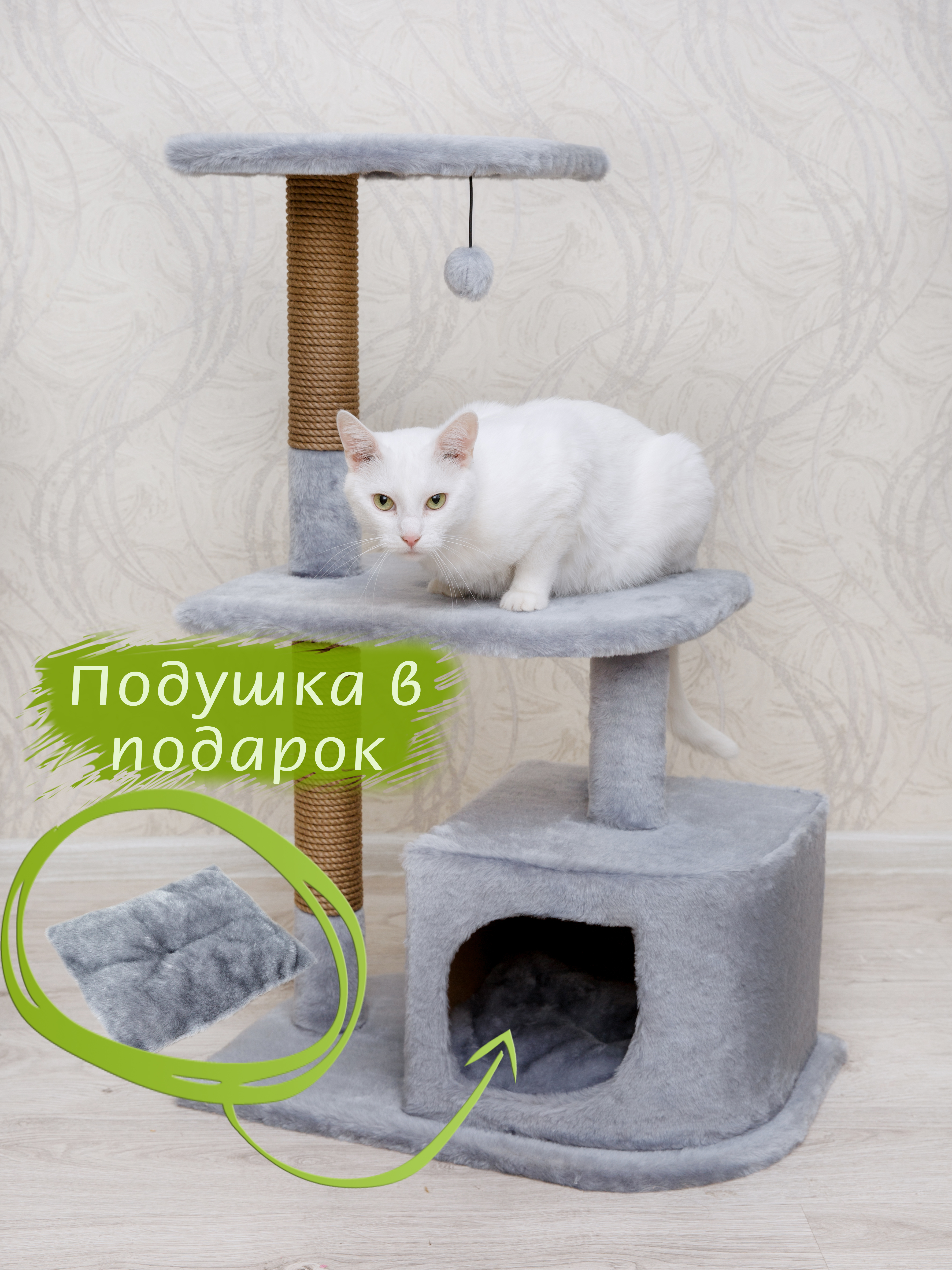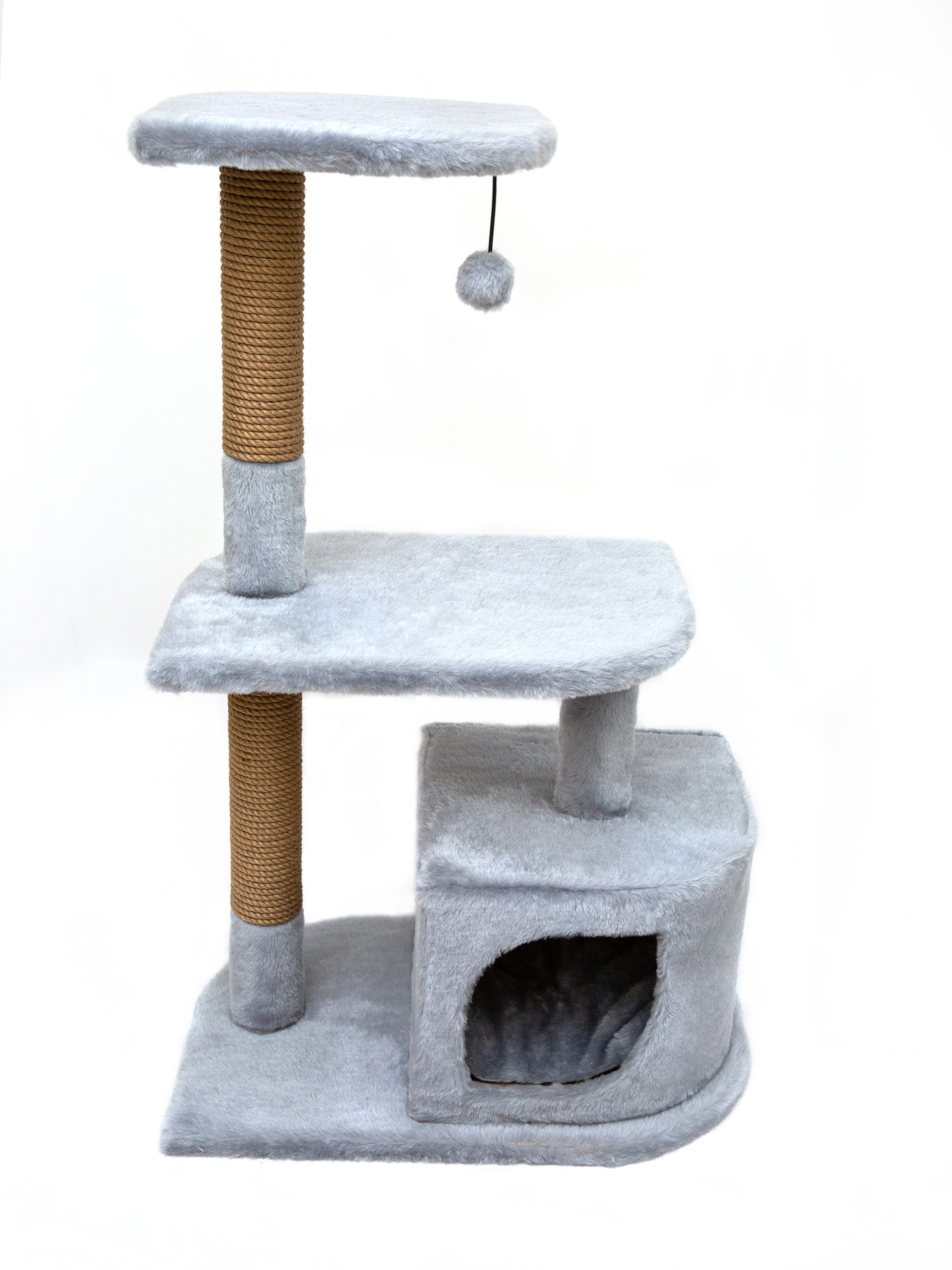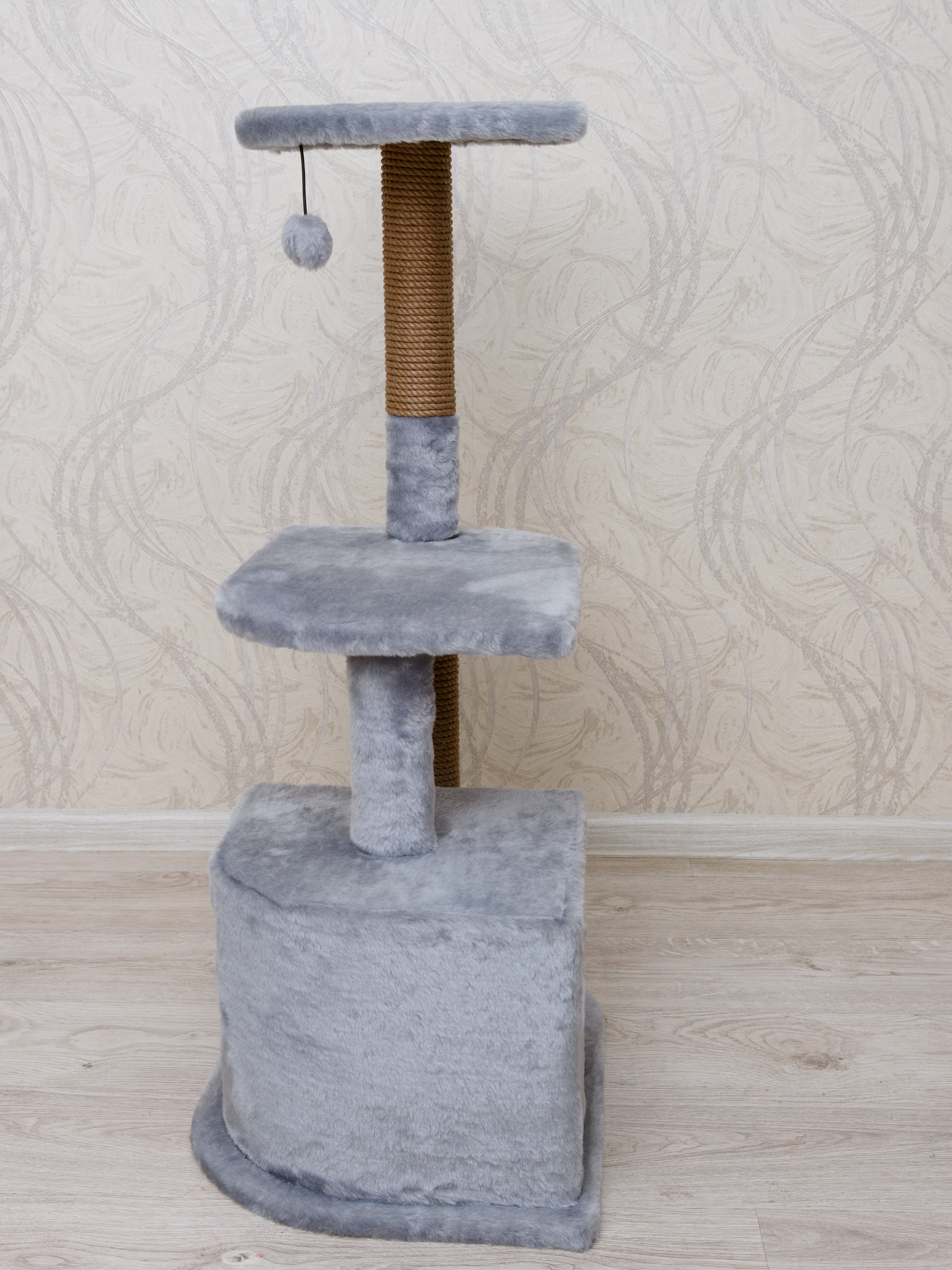 Когтеточка (игровой комплекс) для кошек с домиком, с лежанкой, с игрушкой 56х36х91см, серый, YUGA