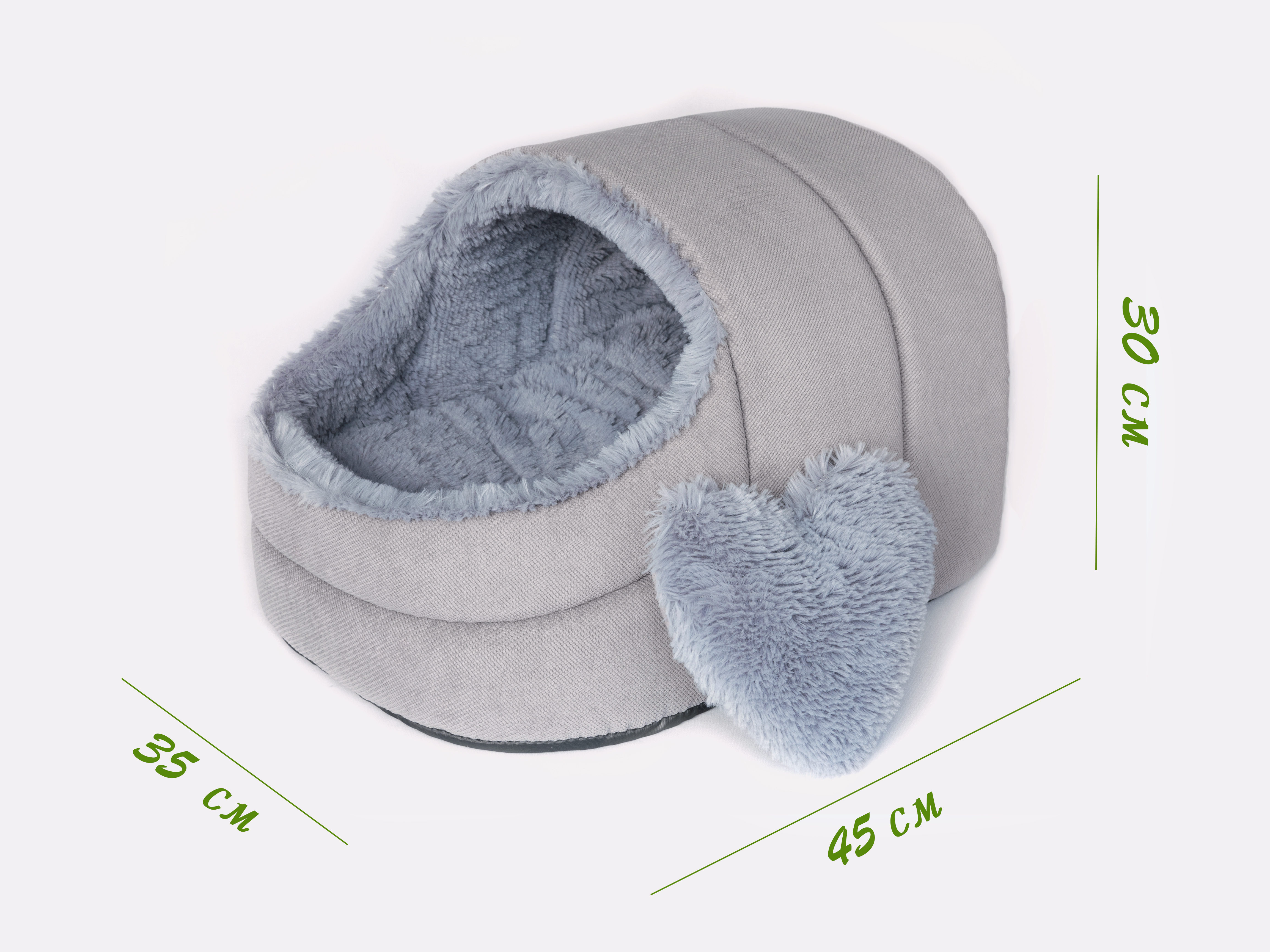 Мягкая лежанка для кошек, собак и животных, 45х35х30см, серая, YUGA