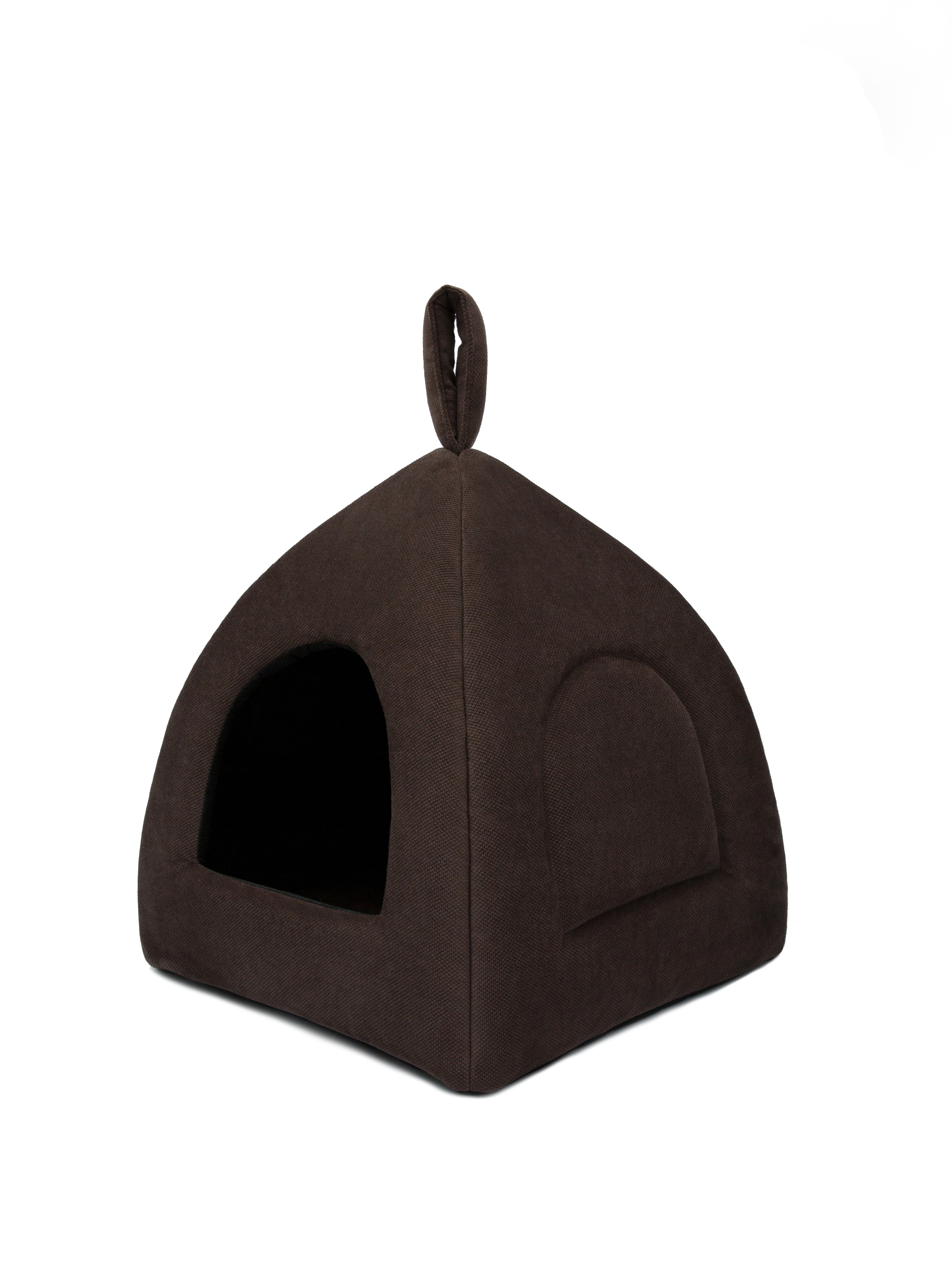 Мягкий домик "Юрта" для кошек, собак и животных с подушкой, 35х35х40см, коричневый, YUGA