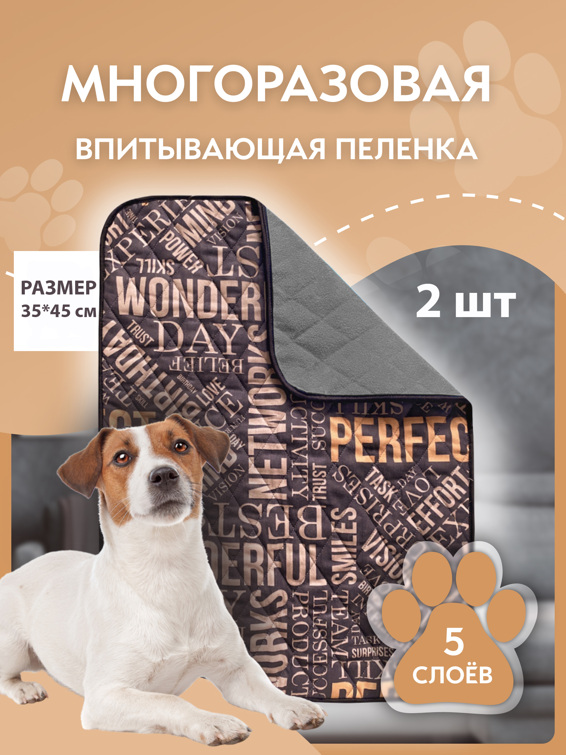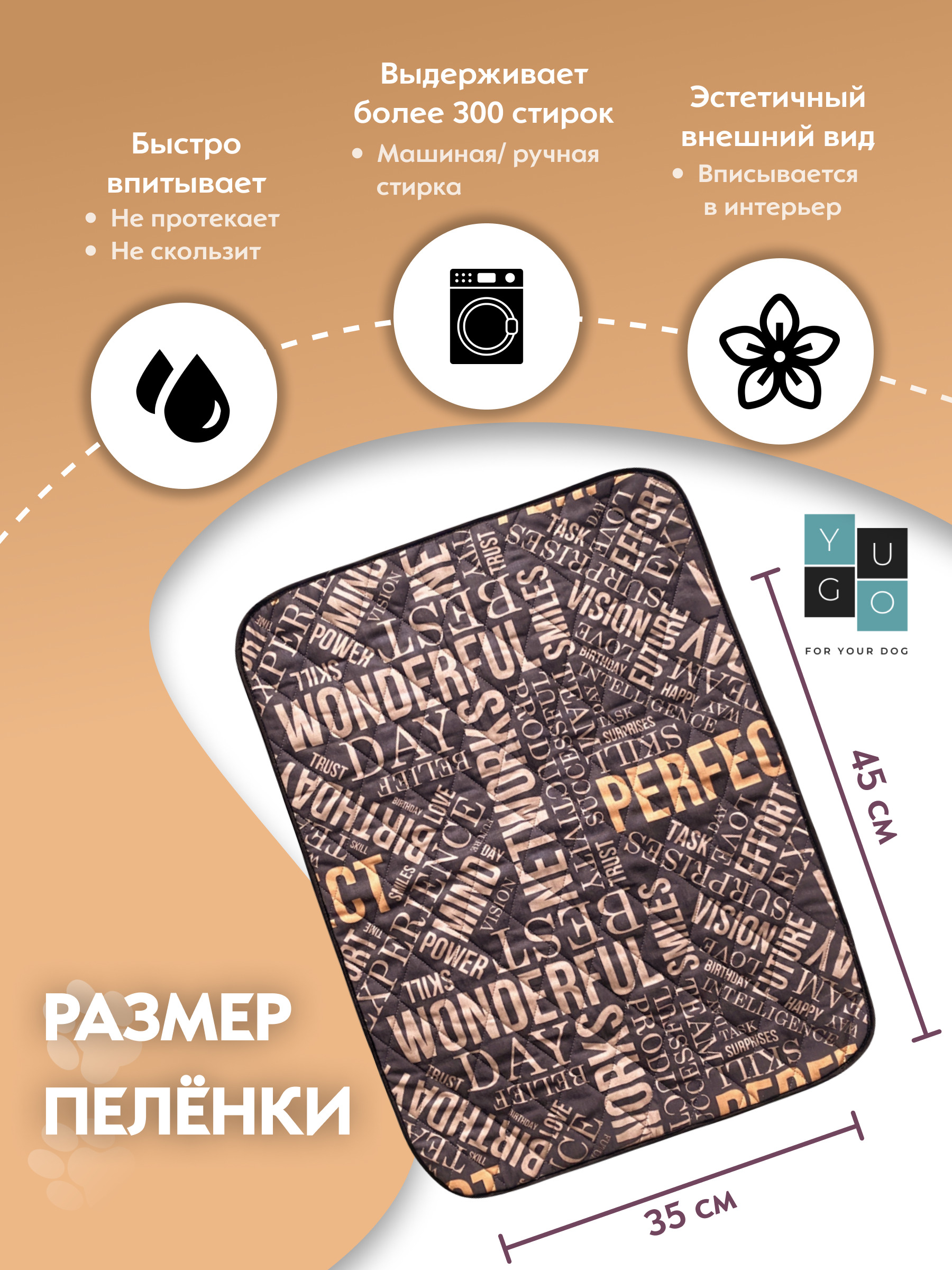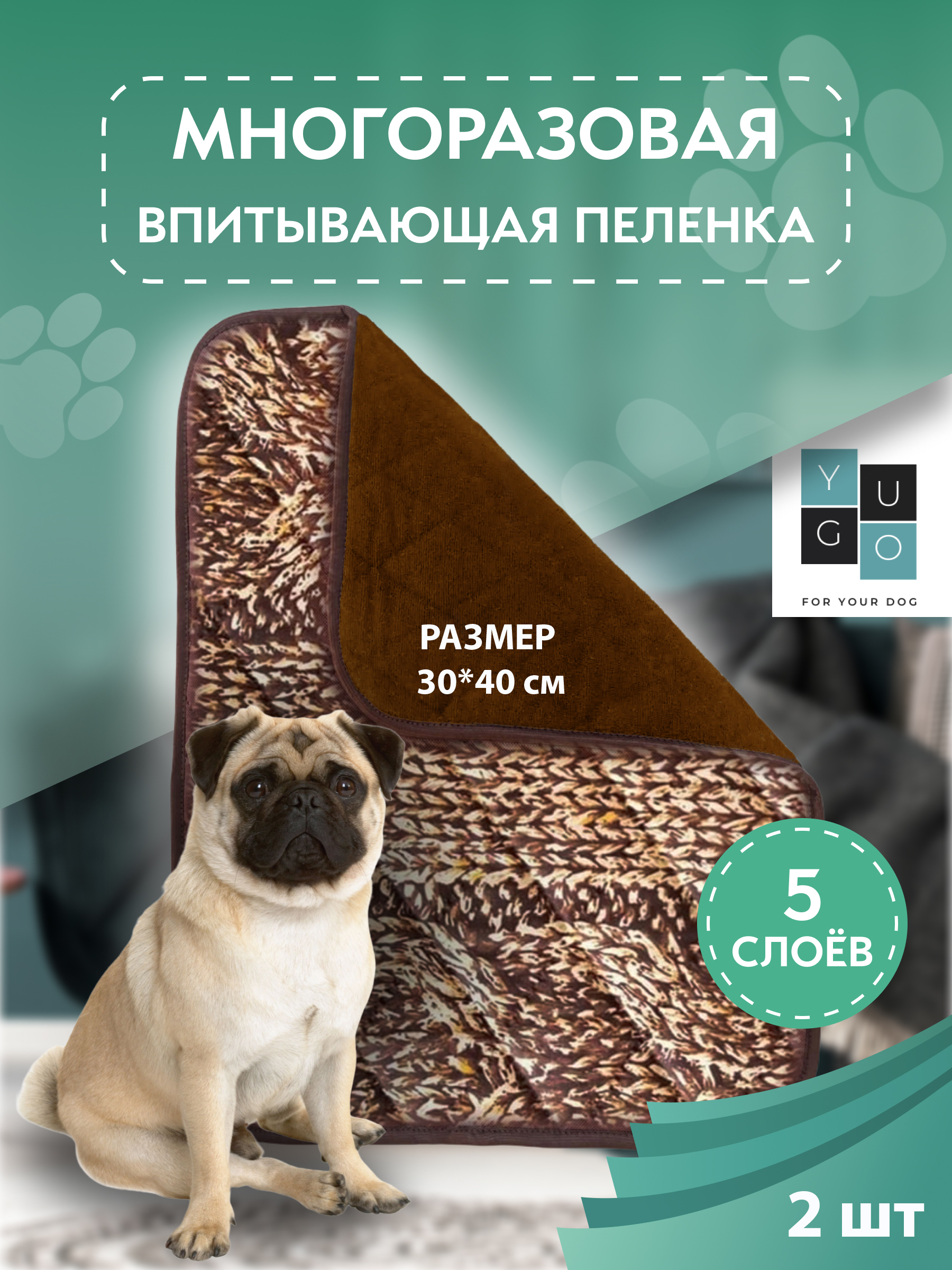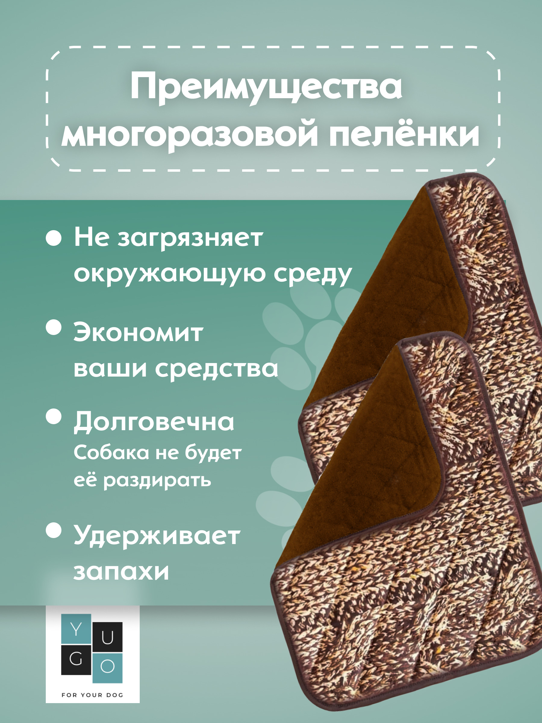 Пеленка для собак многоразовая впитывающая YUGO for you dog 45*35 см (2 шт) кофейная