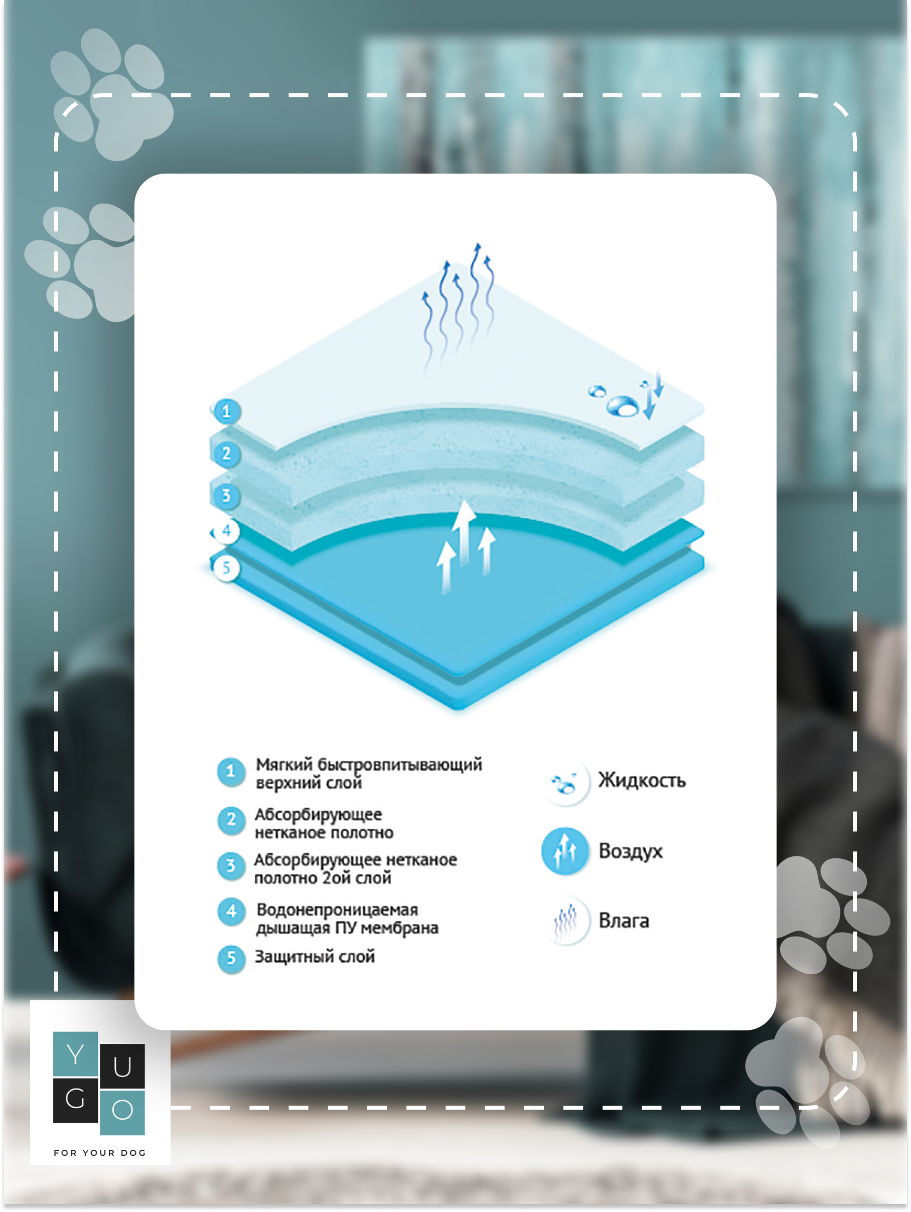 Пеленка для собак многоразовая впитывающая YUGO for you dog 60*70 см (собачки)