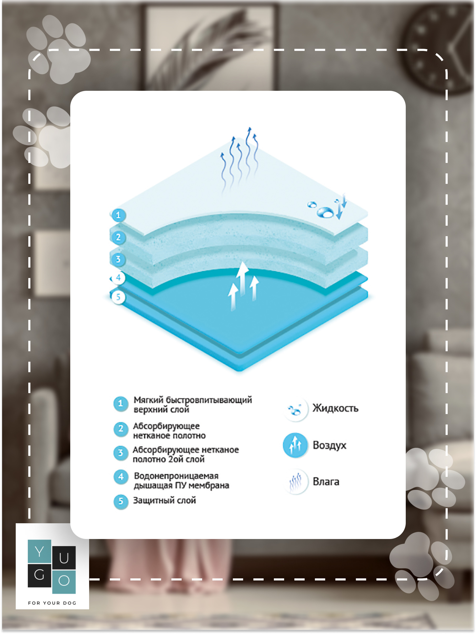 Пеленка для собак многоразовая впитывающая YUGO for you dog 60*70 см (синяя)