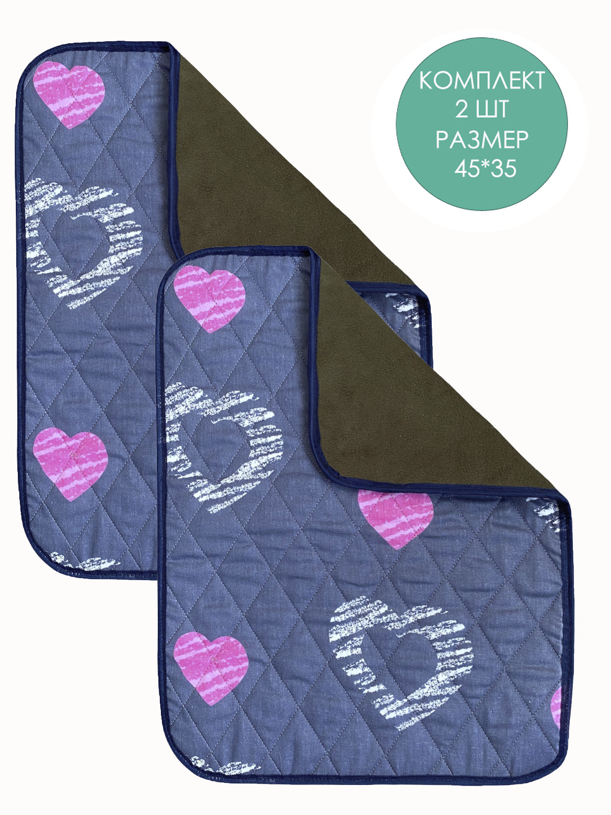 Пеленка для собак многоразовая впитывающая YUGO for you dog 45*60 см (2 шт) сердечки