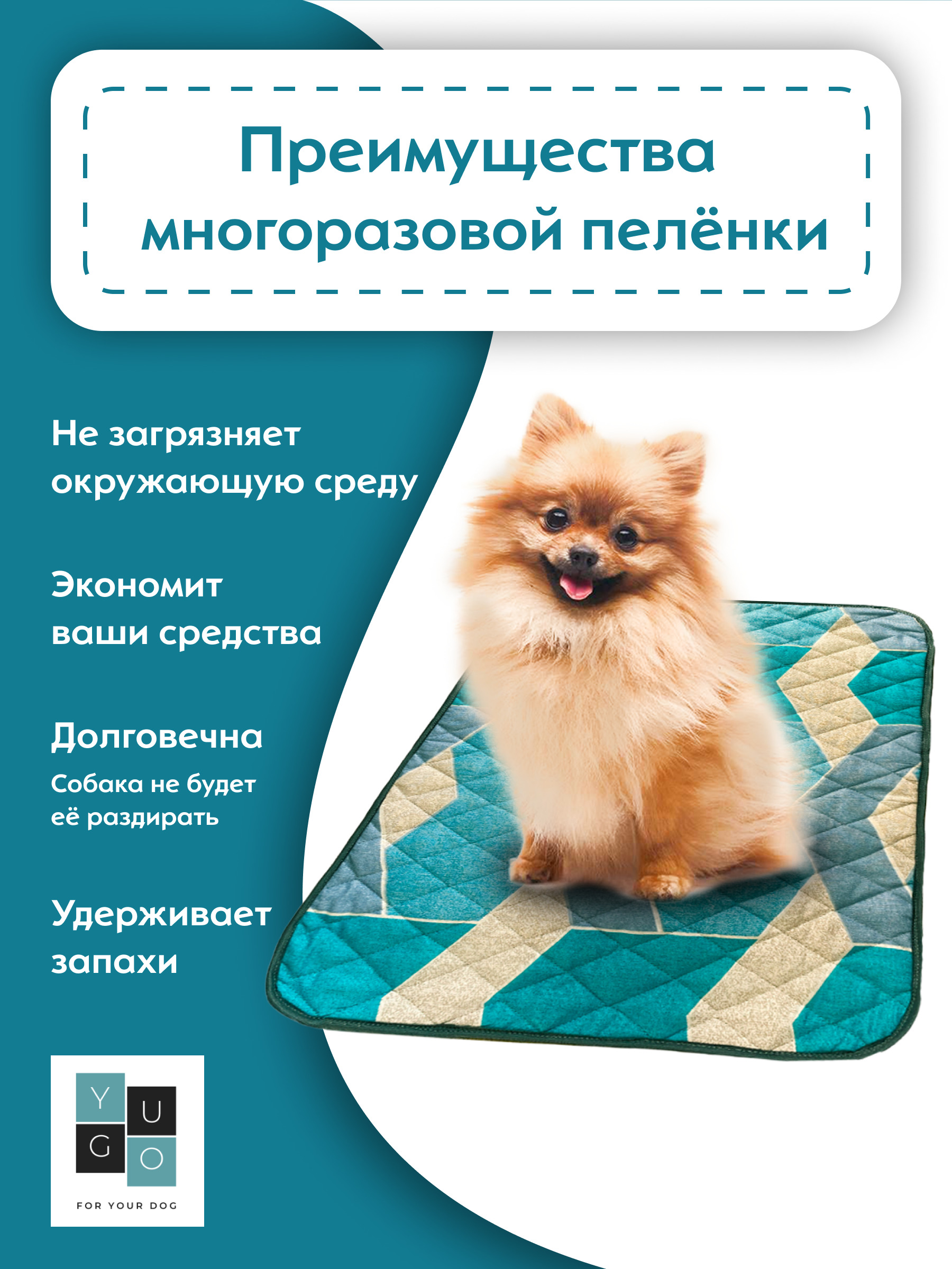 Пеленка (коврик, подстилка) для собак впитывающая (непромокаемая) многоразовая YUGO for you dog 70*90 см (2 шт) бирюза