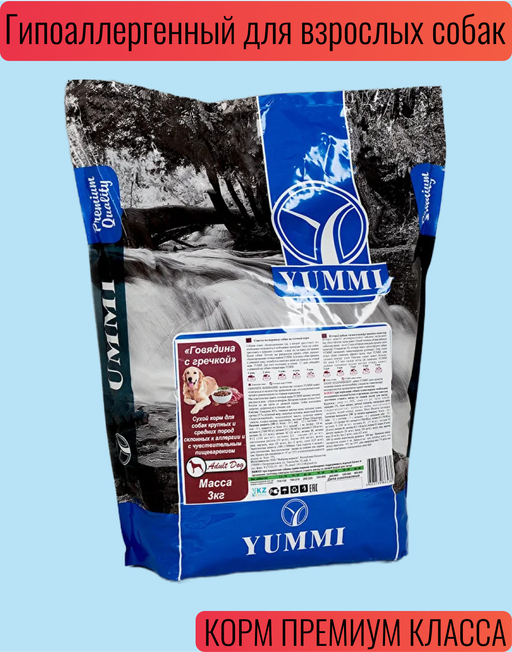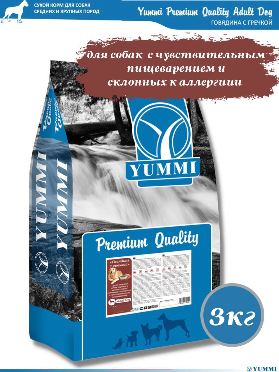 Корм сухой для собак Yummi Premium Quality Говядина и Гречка 3 кг ( юмми, юми, ями)