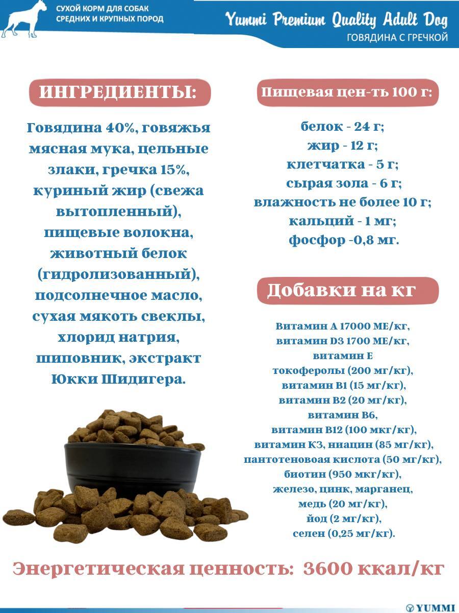 Сухой корм премиум класса YUMMI Premium (ЮММИ) для собак, говядина&гречка, 3кг
