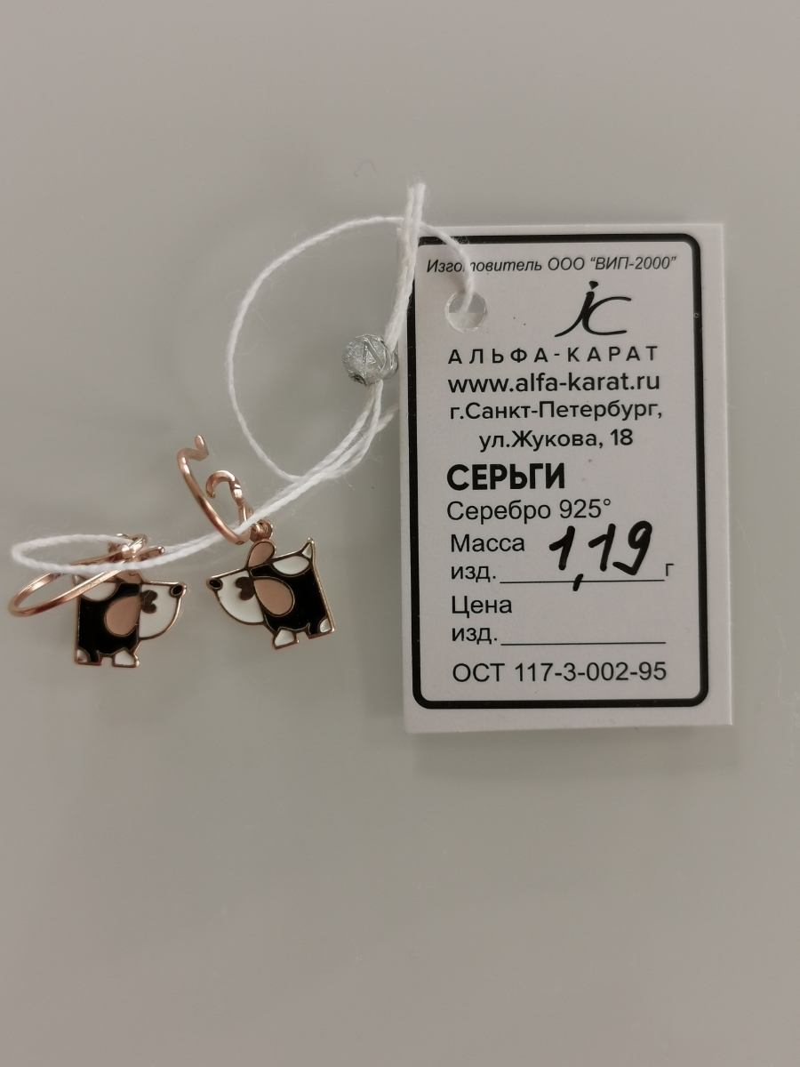 Ювелир Карат Серьги 2029766/9ПБГ-БЕЖГ-ЧГ