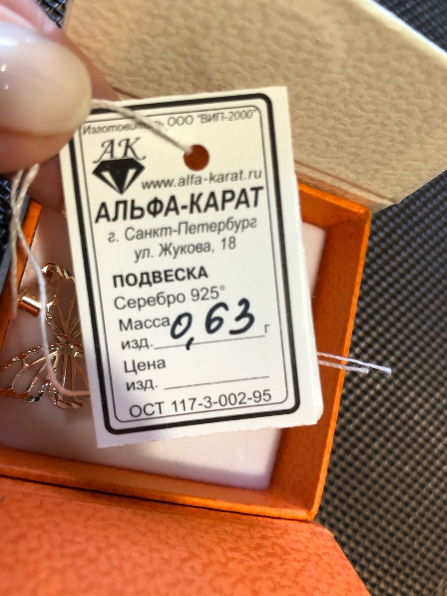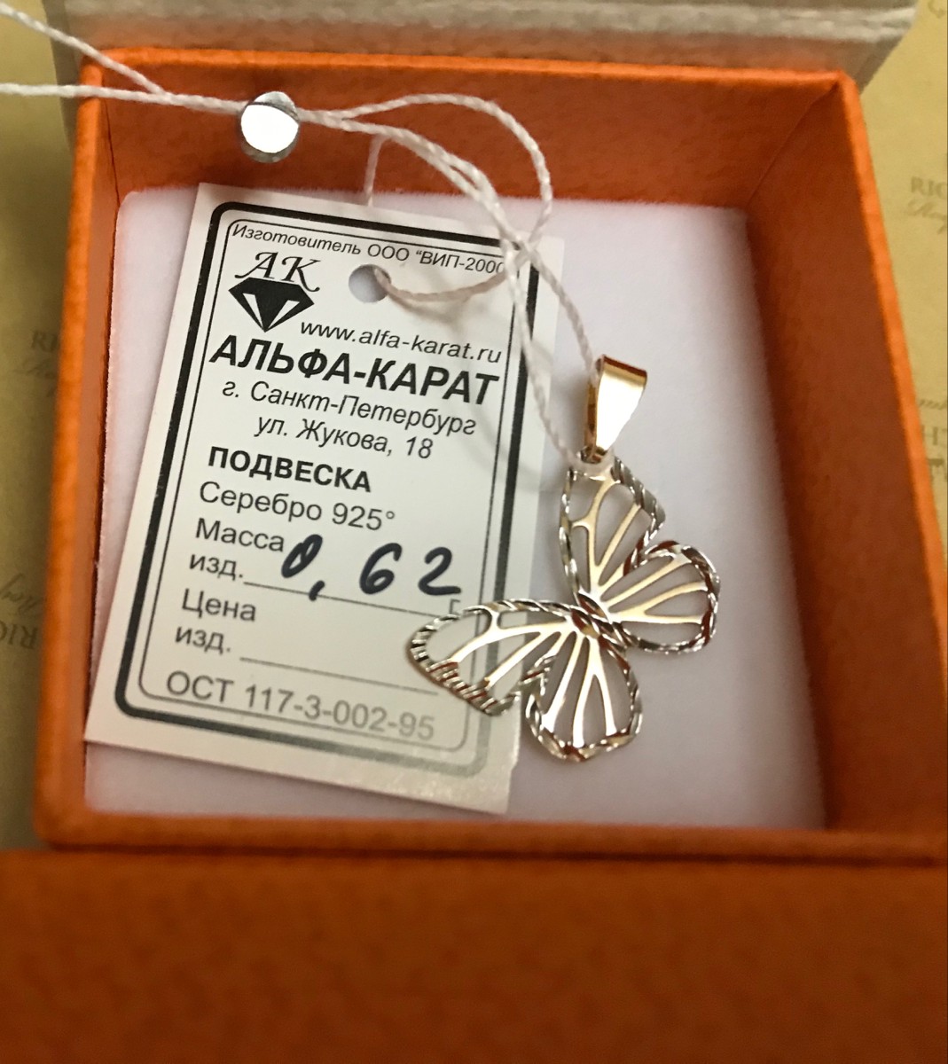 Ювелир Карат Подвеска 2035697/9ПР Бабочка серебро в позолоте