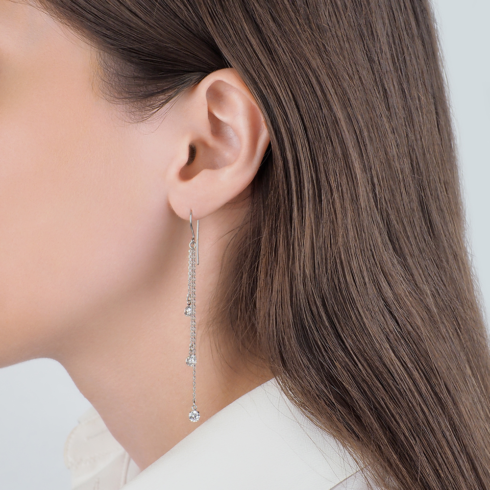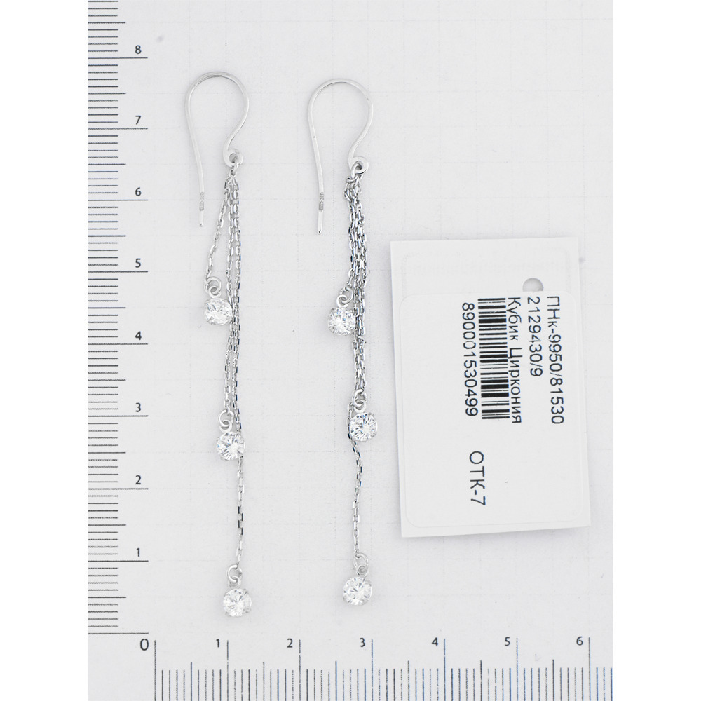 Ювелир Карат Серьги серебряные длинные цепочки с фианитами, серебро 925
