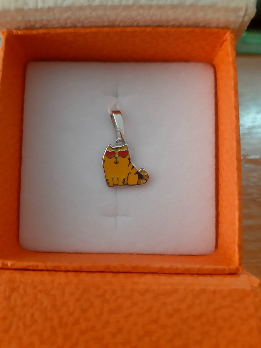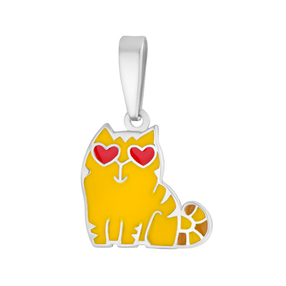 Ювелир Карат Подвеска Кулон серебряный Рыжий кот с эмалью, серебро 925