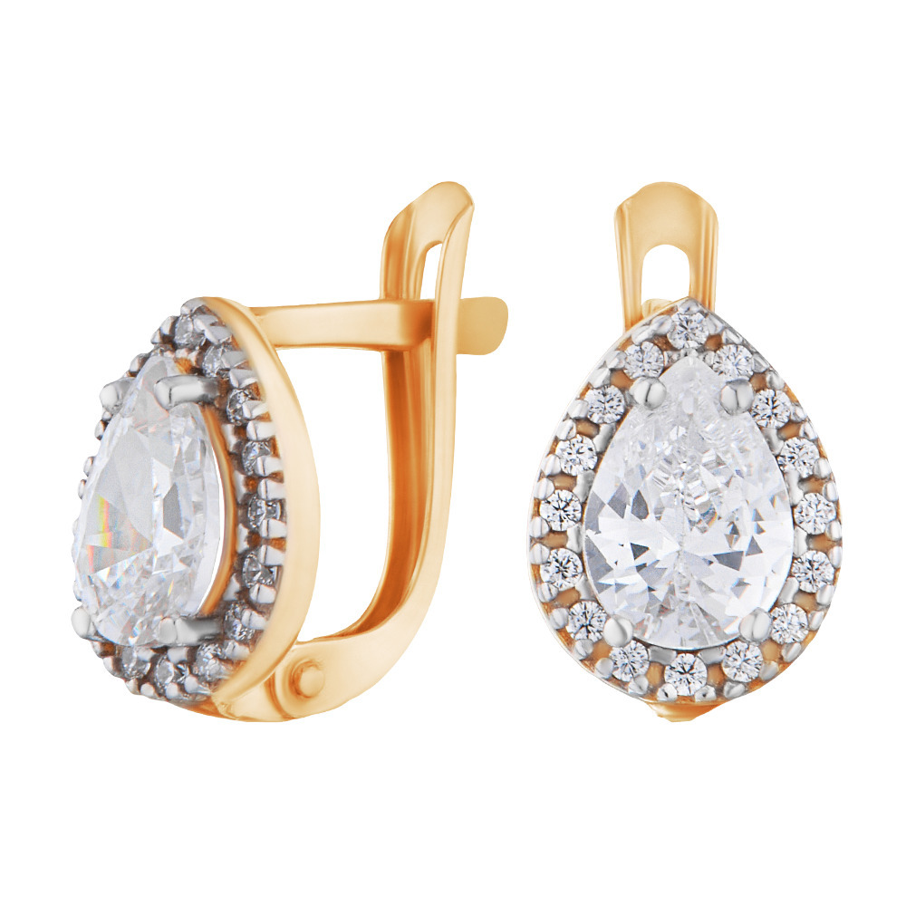 Ювелир Карат Серьги серебряные Капли с фианитами