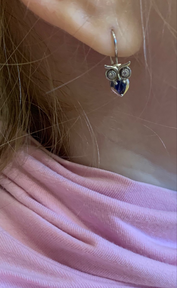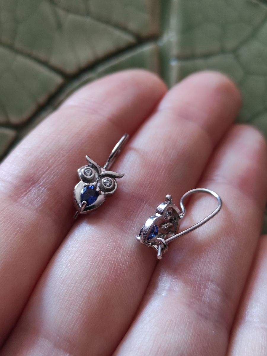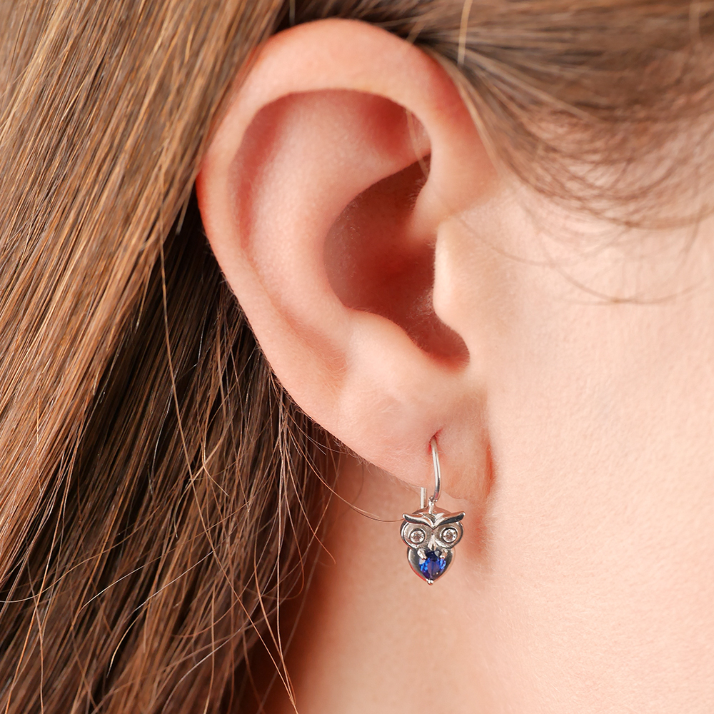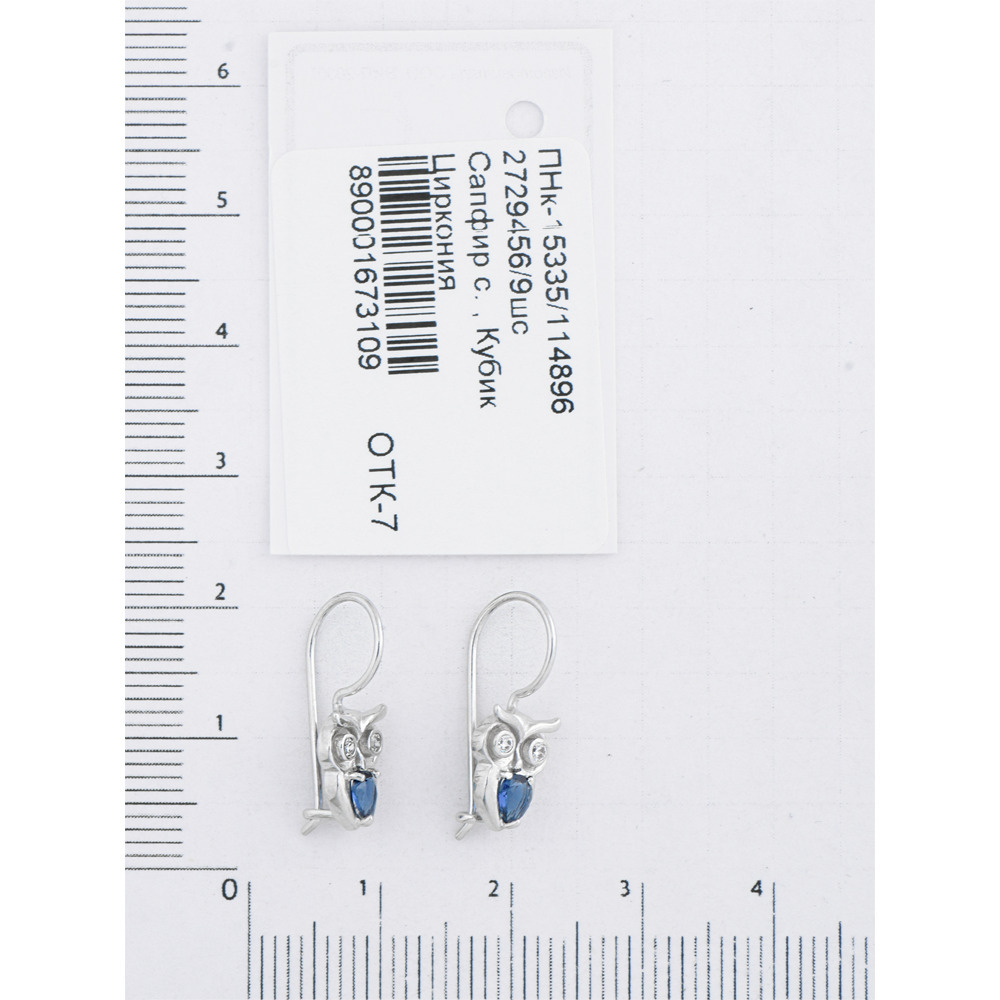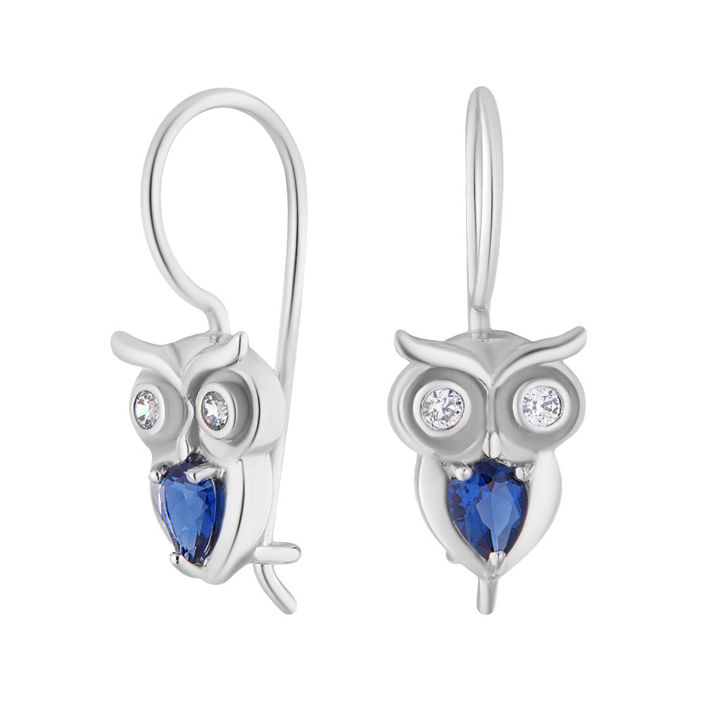 Ювелир Карат Серьги детские серебряные "Сова" со шпинель сапфиром и фианитами 2729456/9ШС