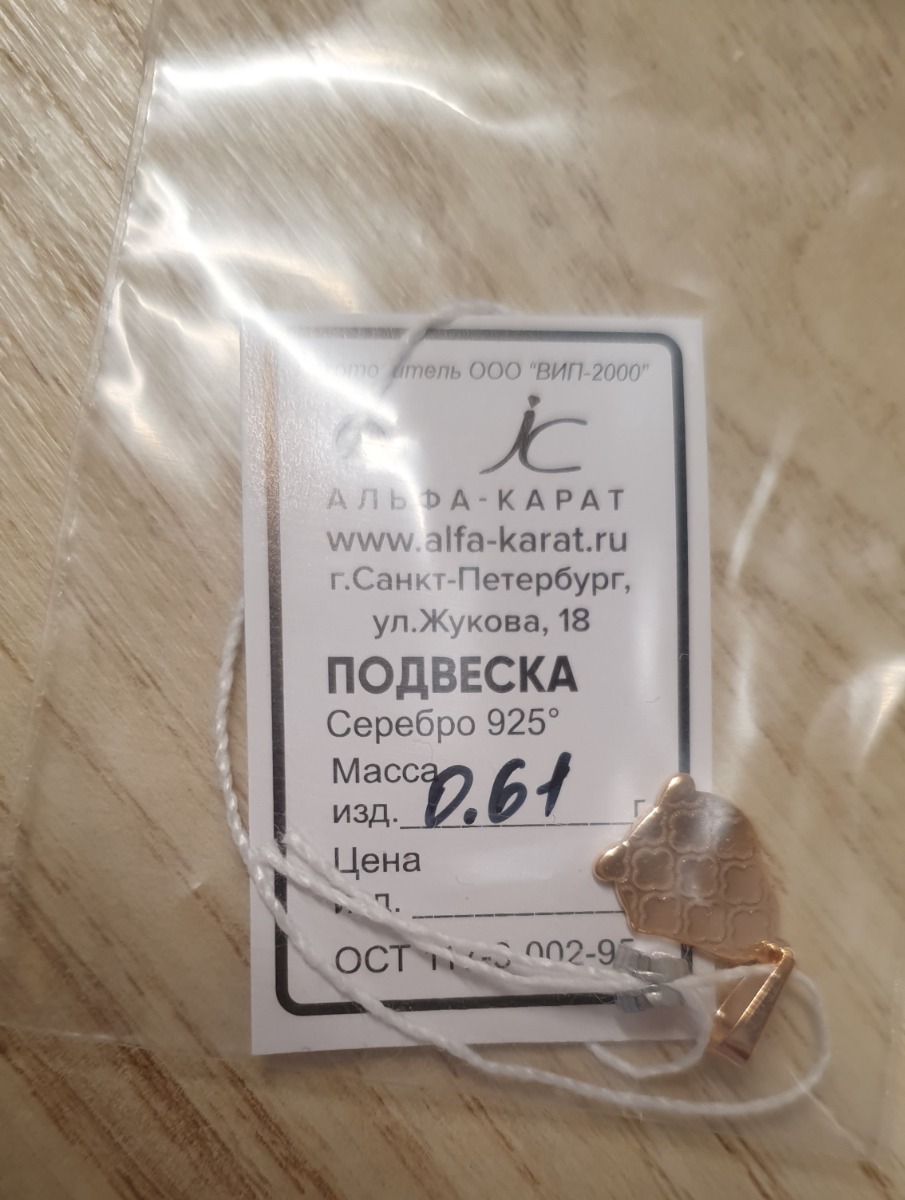 Ювелир Карат Подвеска 2039799/9ПМВГ-МГ-ОХГ-ЧГ