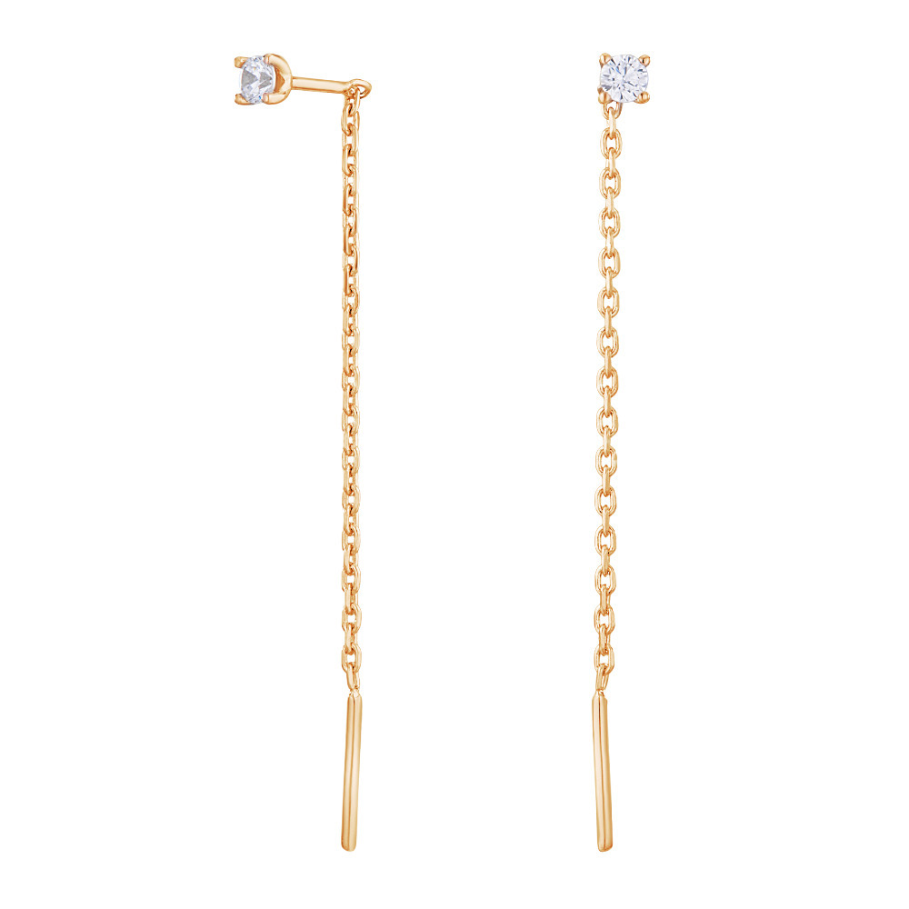 Ювелир Карат Серьги серебряные длинные протяжки с фианитами на цепочке минимализм