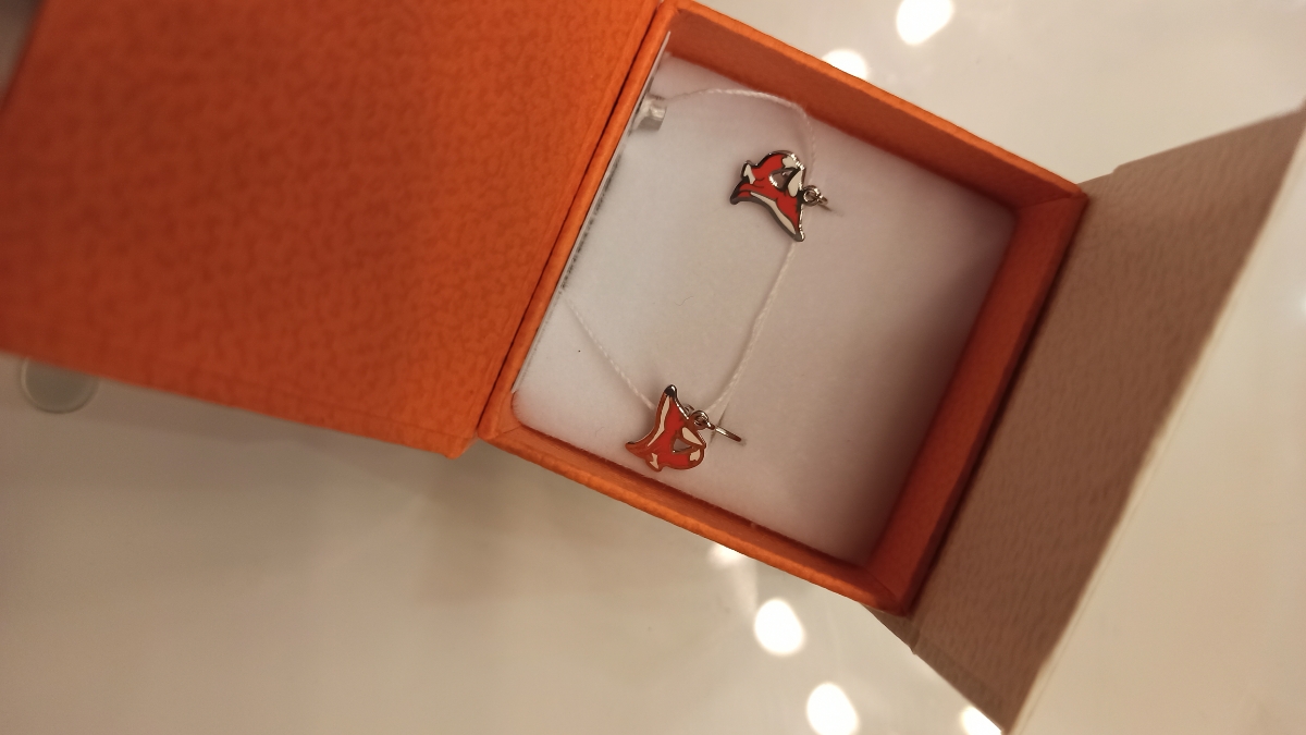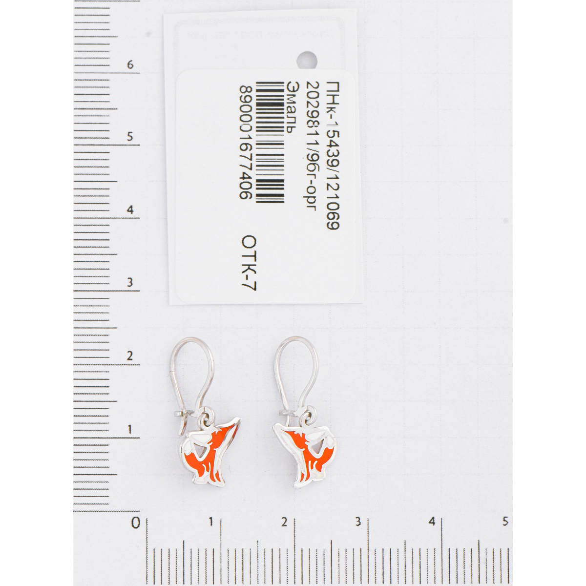 Ювелир Карат Серьги ювелирные серебряные детские "Лиса" с эмалью, серебро 925