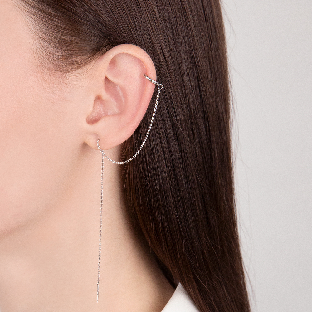 Ювелир Карат Моносерьга серебряная на 2 прокола каффа (кафф / каффы) 20210295/9 ПОЛУПАРА