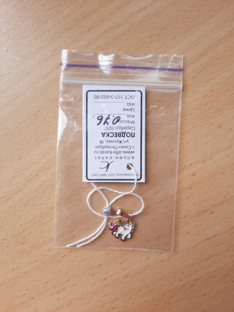 Ювелир Карат Подвеска Кулон серебряный в позолоте Единорог с эмалью, серебро 925