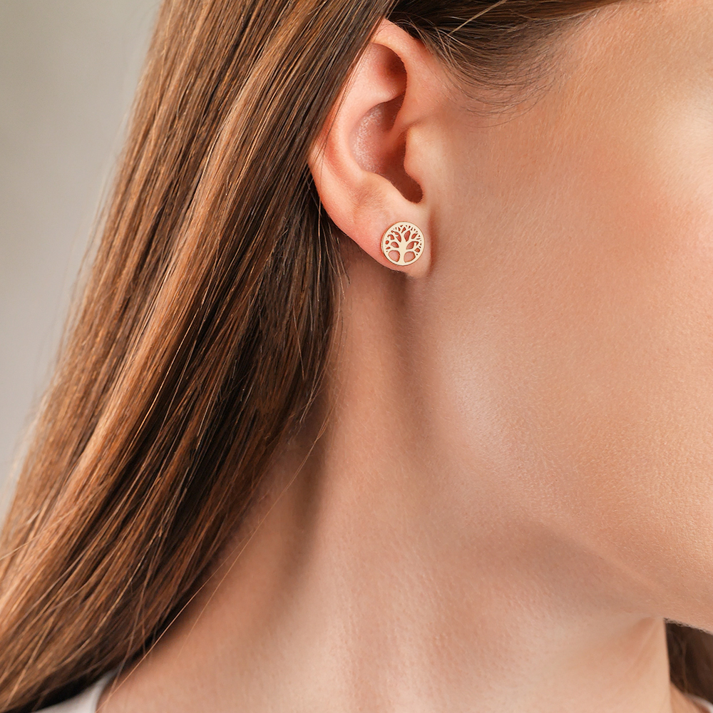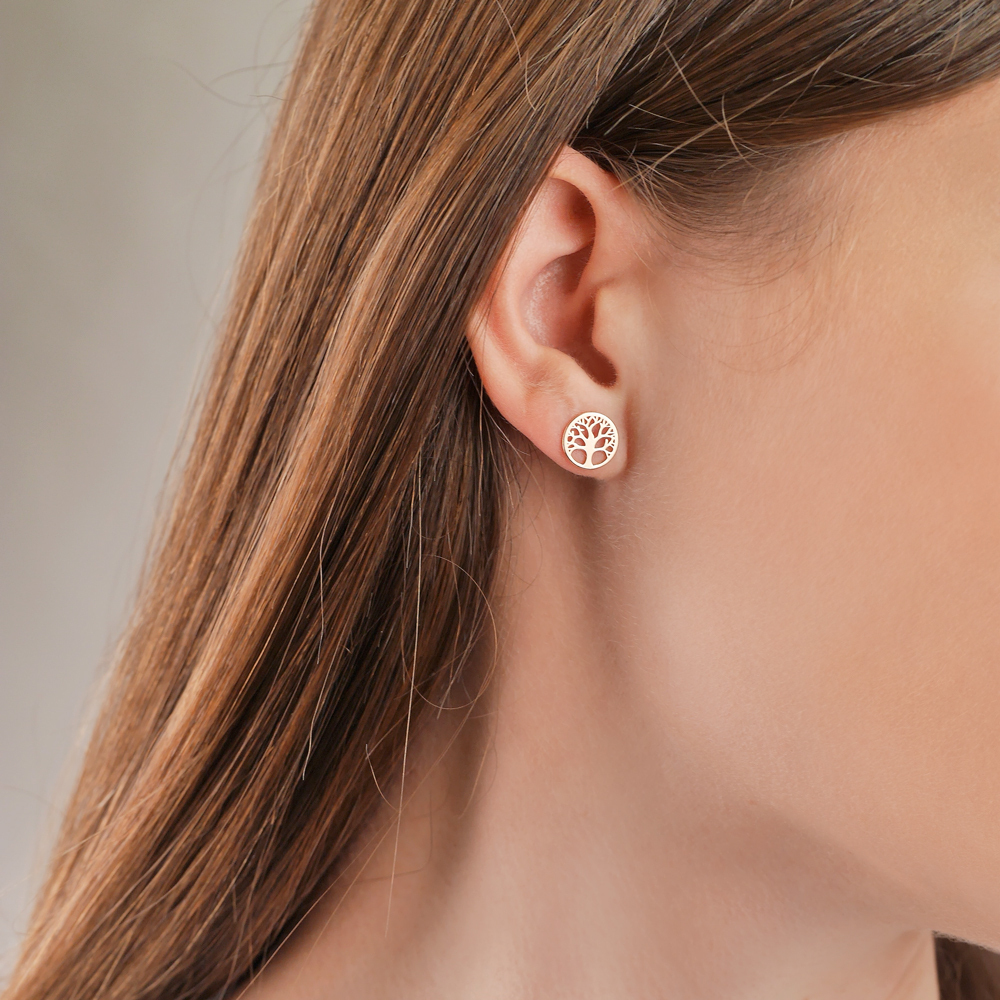 Ювелир Карат Серьги ювелирные серебряные пусеты, гвоздики "Дерево жизни", серебро 925