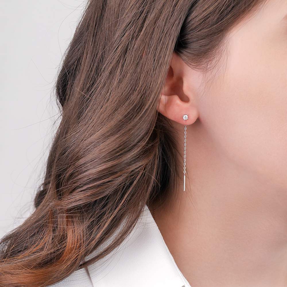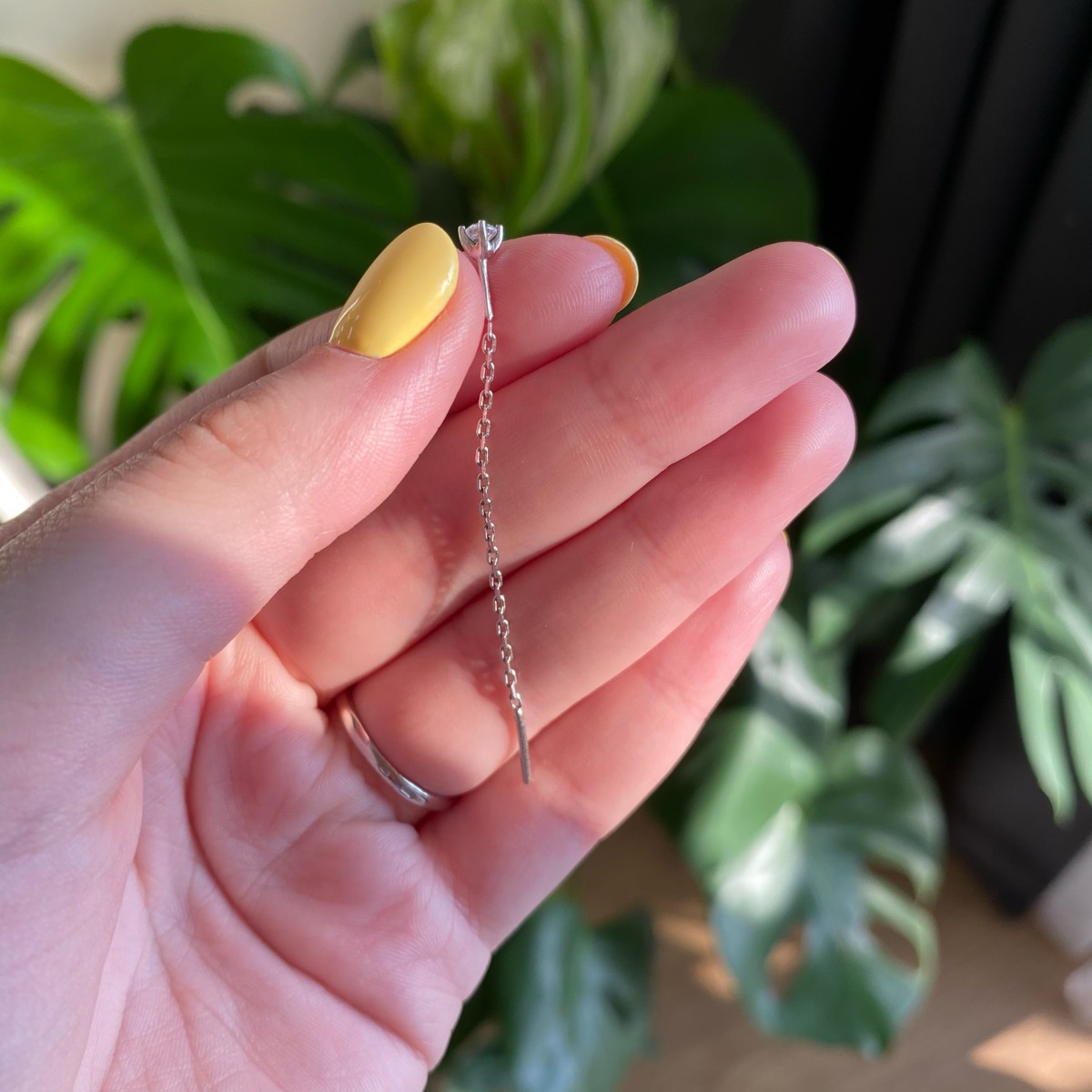 Ювелир Карат Серьги серебряные длинные протяжки с фианитами на цепочке минимализм