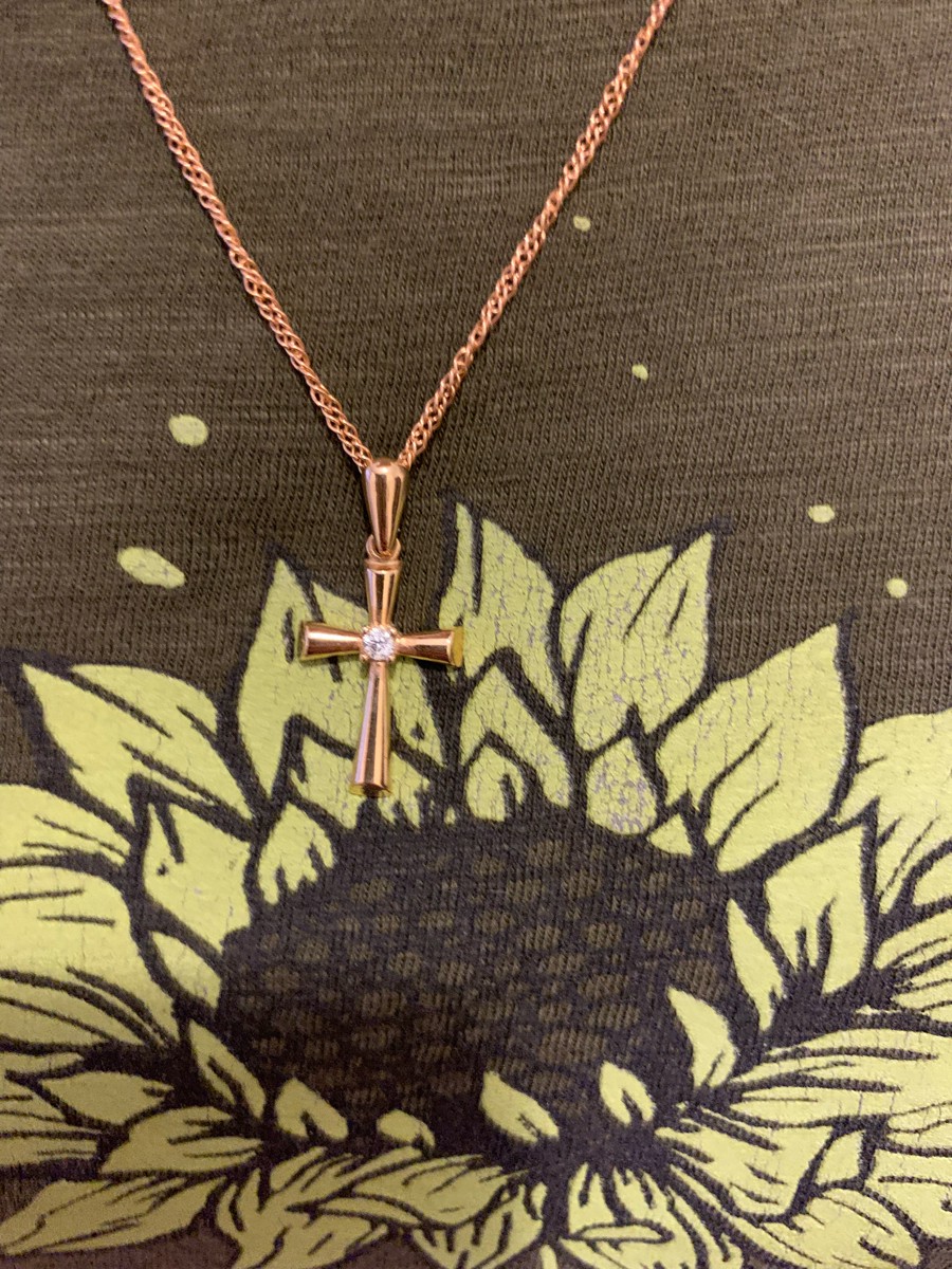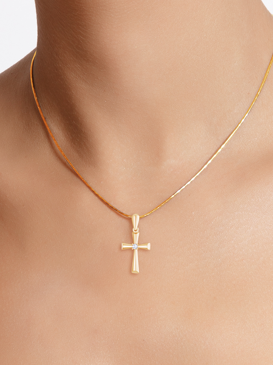 Ювелир Карат Крестик ювелирный серебряный с фианитами в позолоте, серебро 925