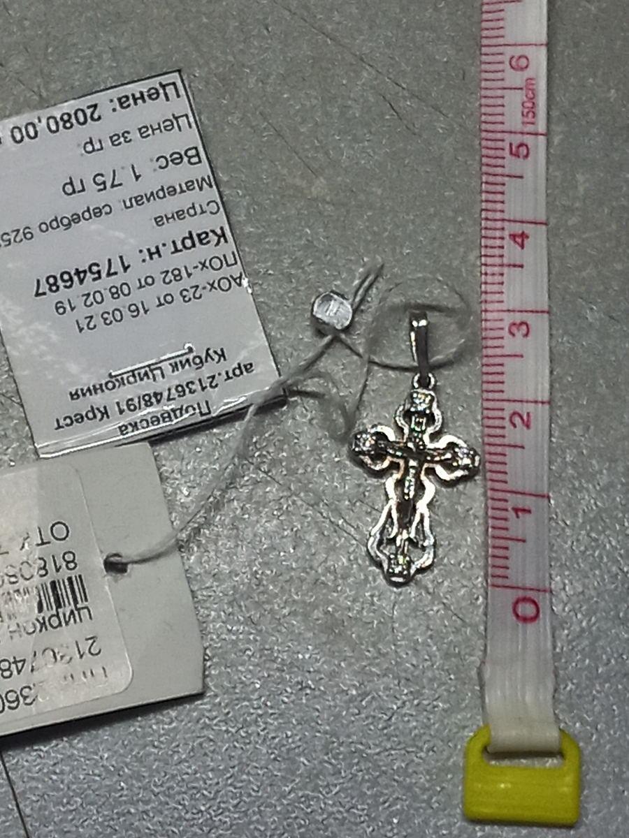 Ювелир Карат Крестик серебряный с фианитами, серебро 925