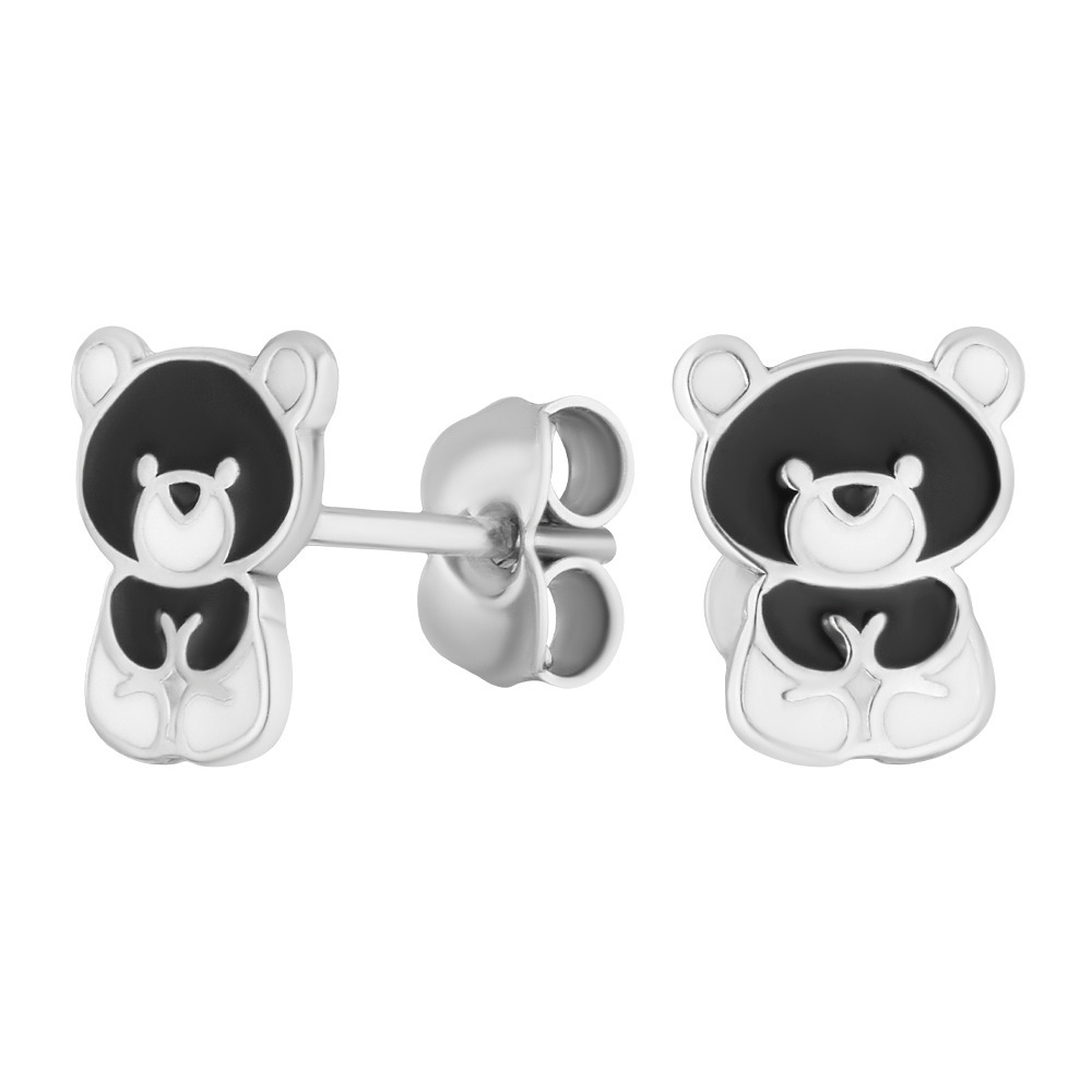 Ювелир Карат Серьги детские серебряные пусеты, гвоздики "Панда" с эмалью, серебро 925