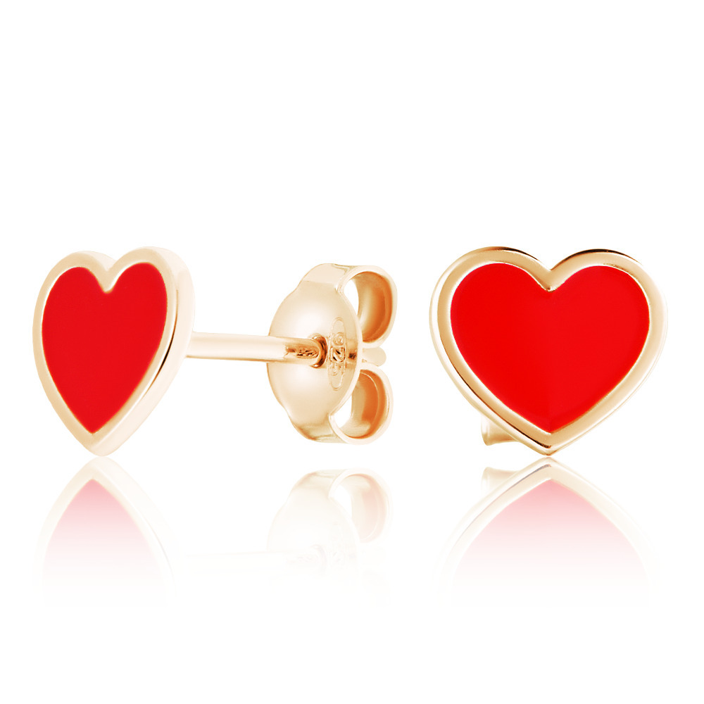 Ювелир Карат Серьги ювелирные серебряные пусеты, гвоздики "Сердце" с эмалью, серебро 925