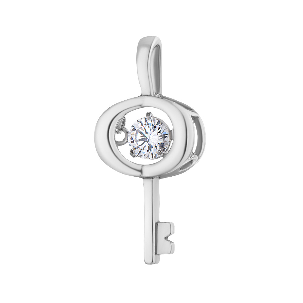 Ювелир Карат Подвеска Кулон серебряный Ключ с танцующим качающимся фианитом, серебро 925