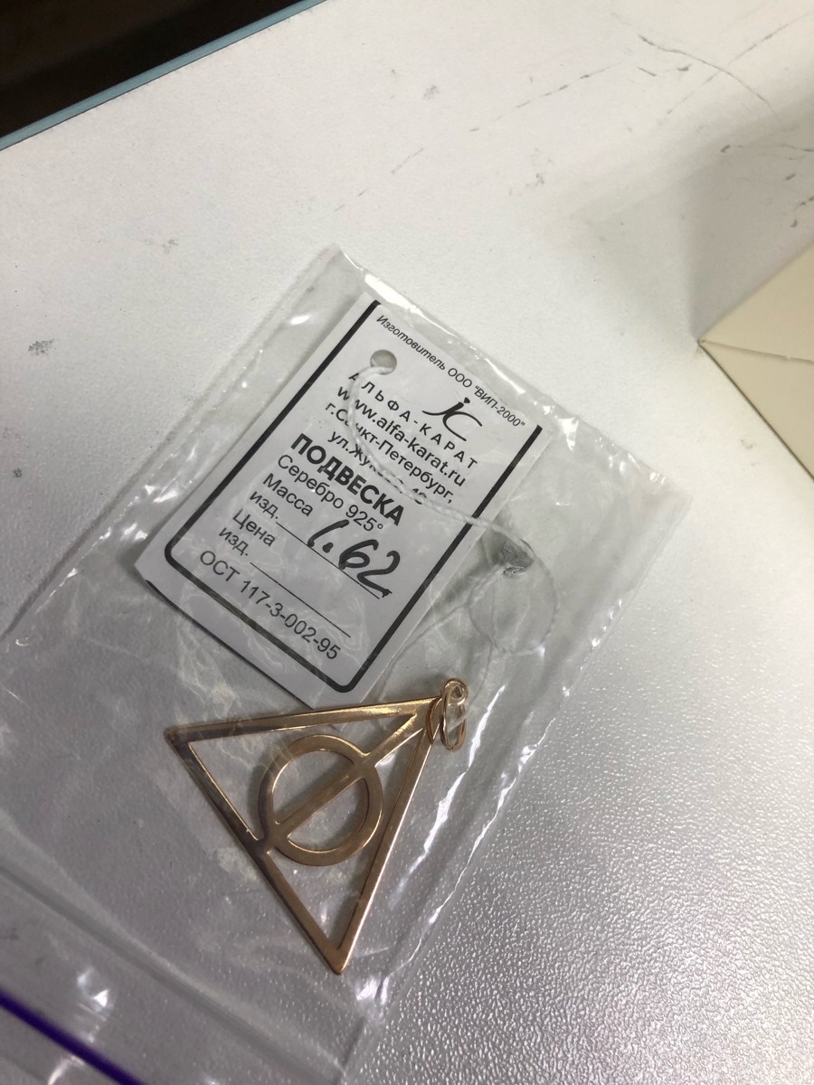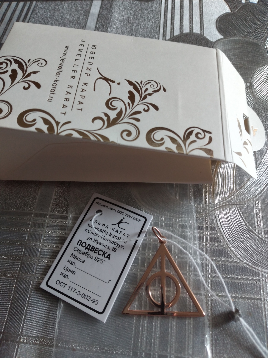 Ювелир Карат Подвеска Кулон серебряный Дары Смерти Гарри Поттер, серебро 925