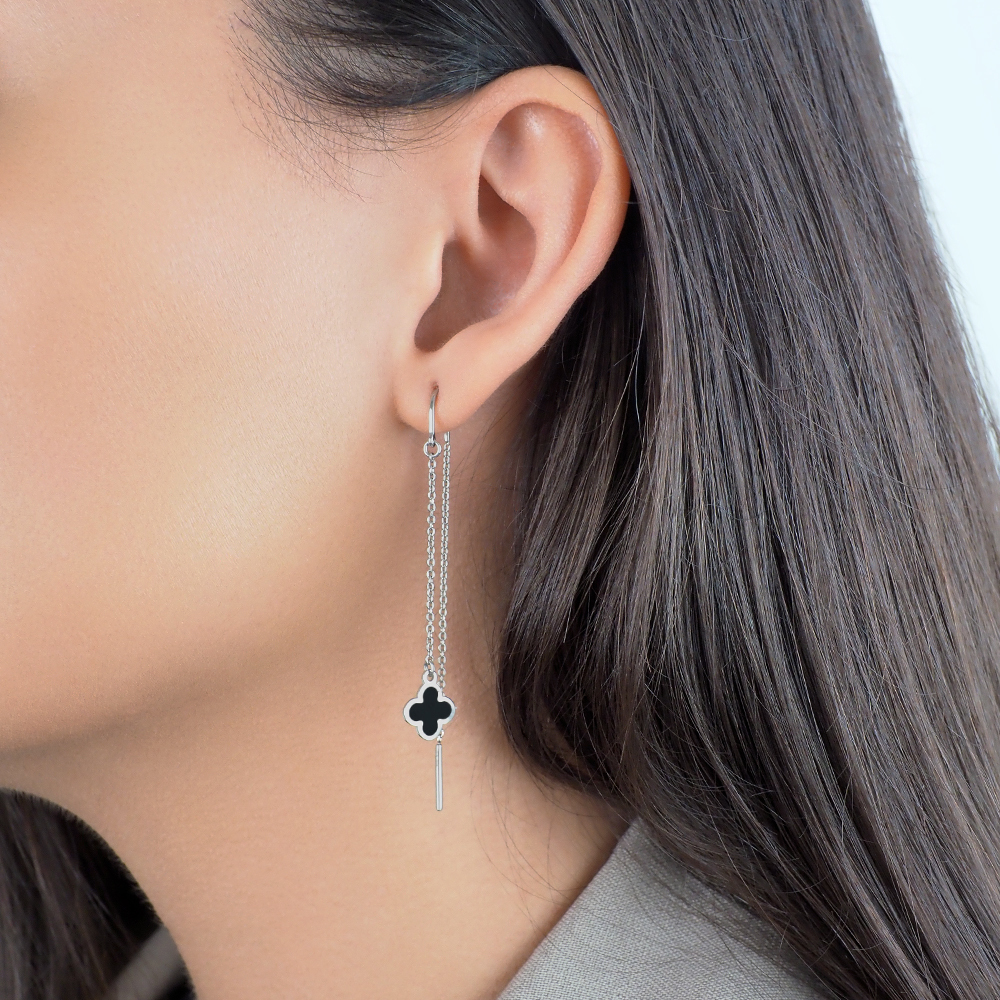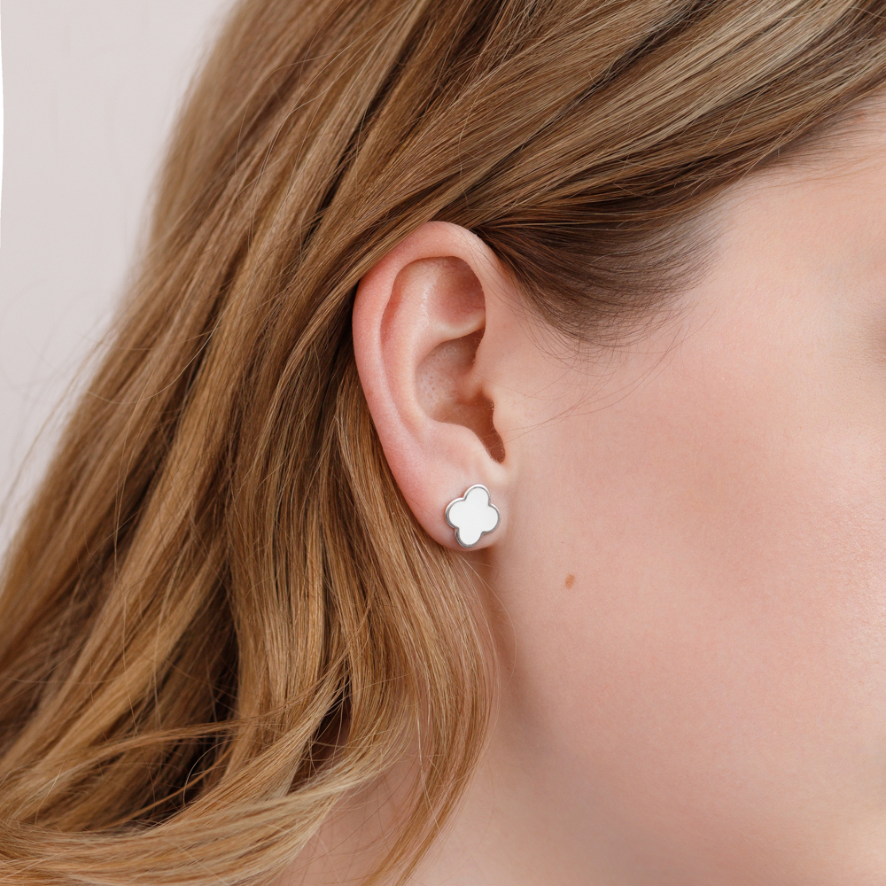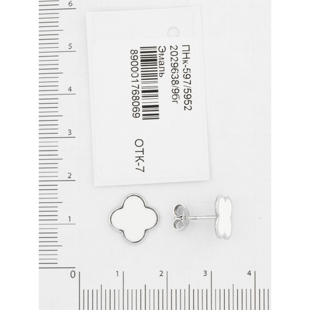 Ювелир Карат Серьги серебряные пусеты, гвоздики "Клевер" / "Четырехлистник" с эмалью