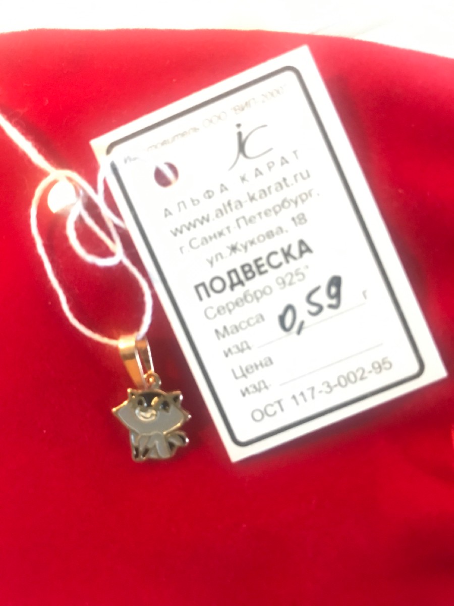 Ювелир Карат Подвеска Кулон серебряный Енот с эмалью, серебро 925