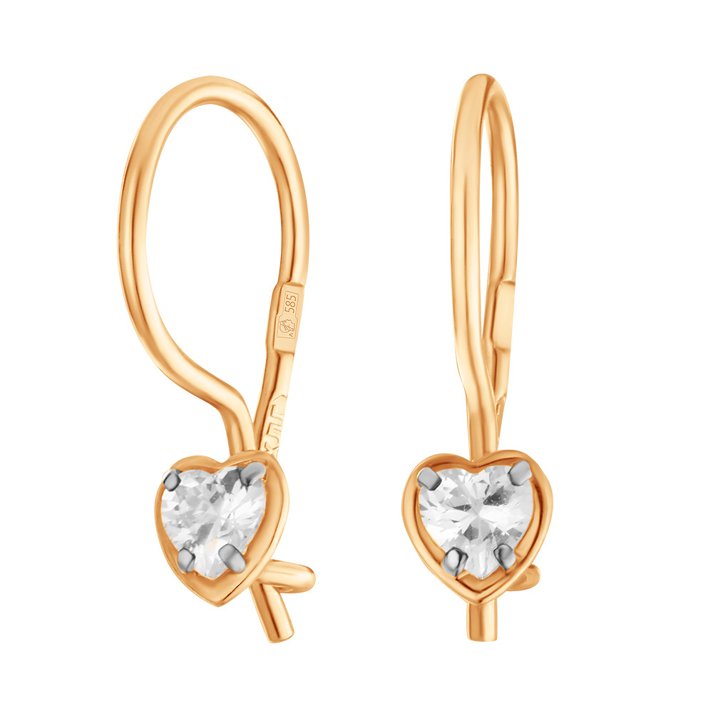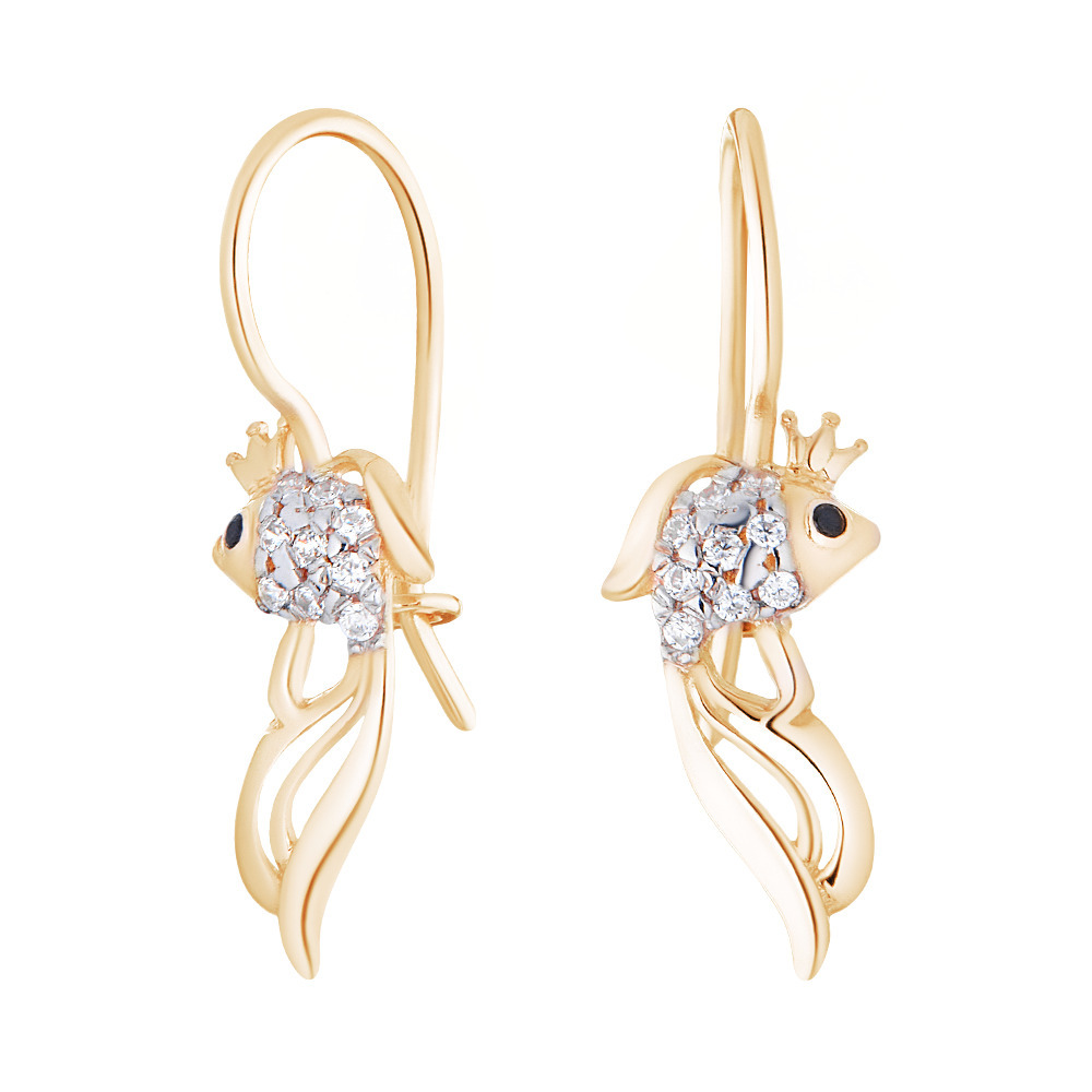 Ювелир Карат Серьги детские золотые "Рыбка" с фианитами 1829086