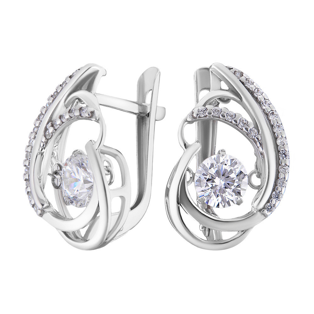 Ювелир Карат Серьги ювелирные серебряные с танцующими качающимися фианитами, серебро 925