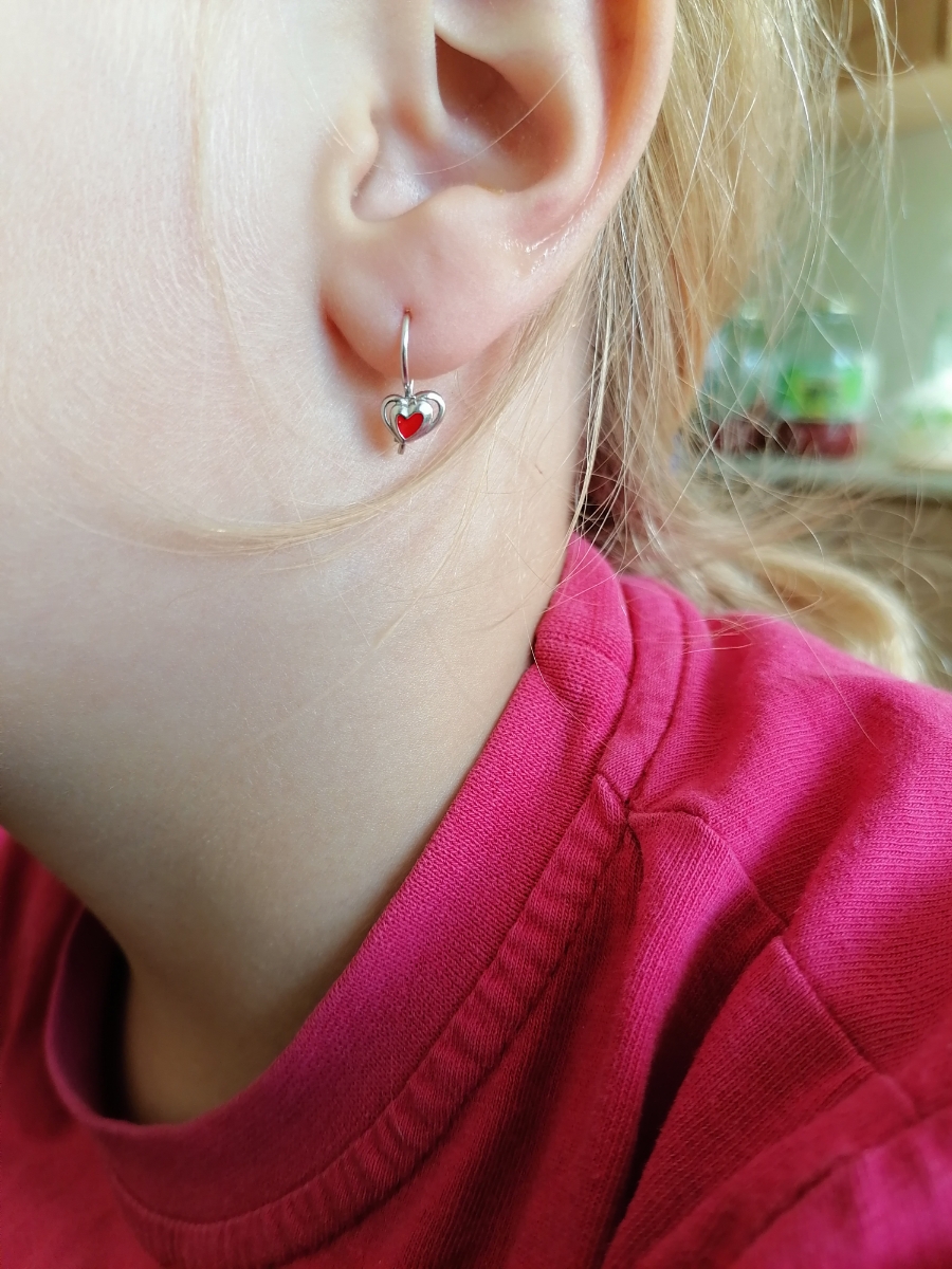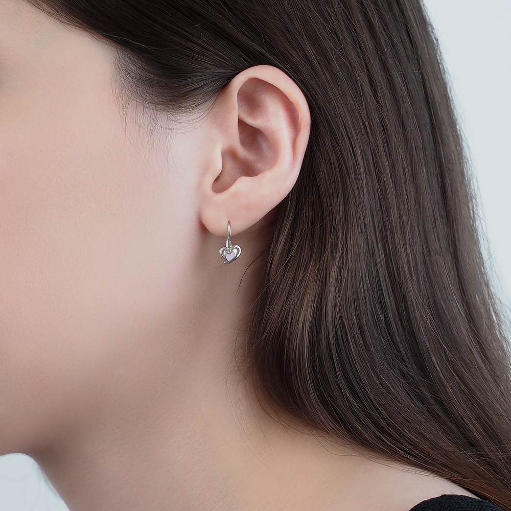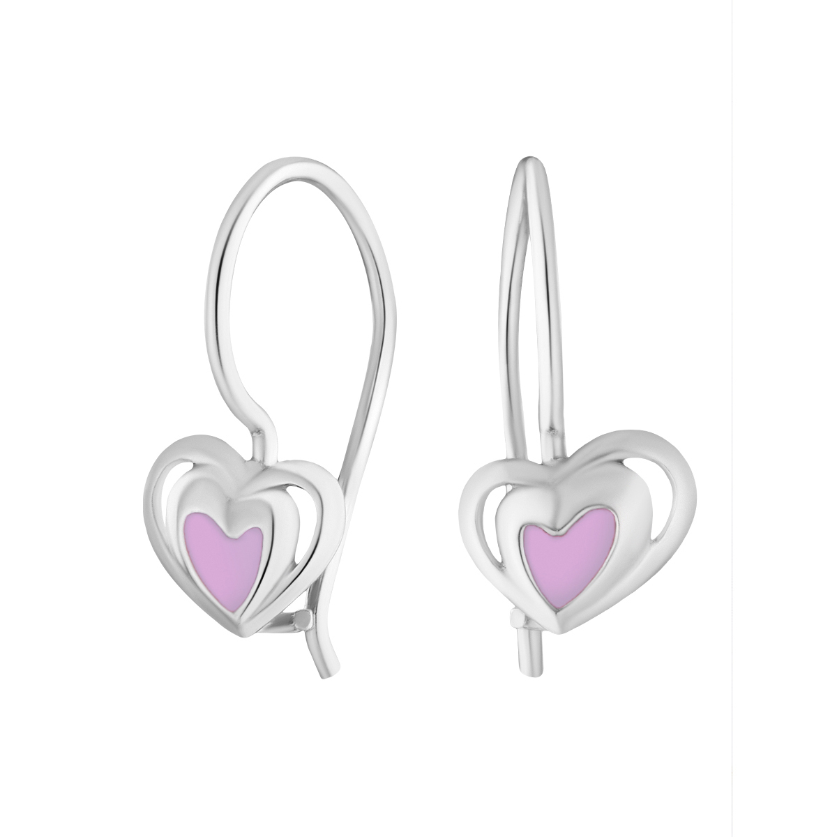 Ювелир Карат Серьги серебряные детские "Сердце" с эмалью, серебро 925