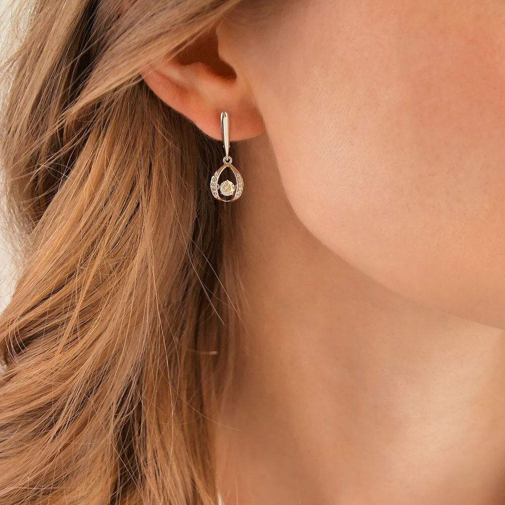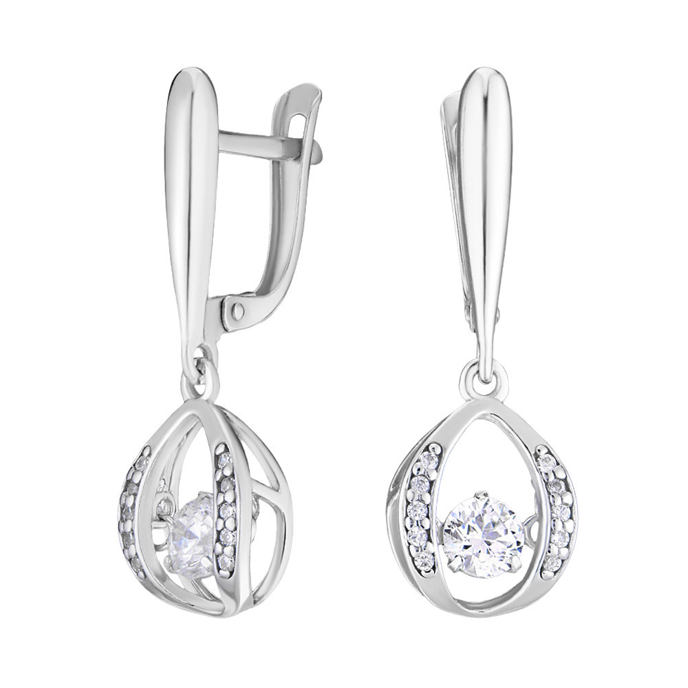 Ювелир Карат Серьги серебряные Капли с танцующими качающимися фианитами