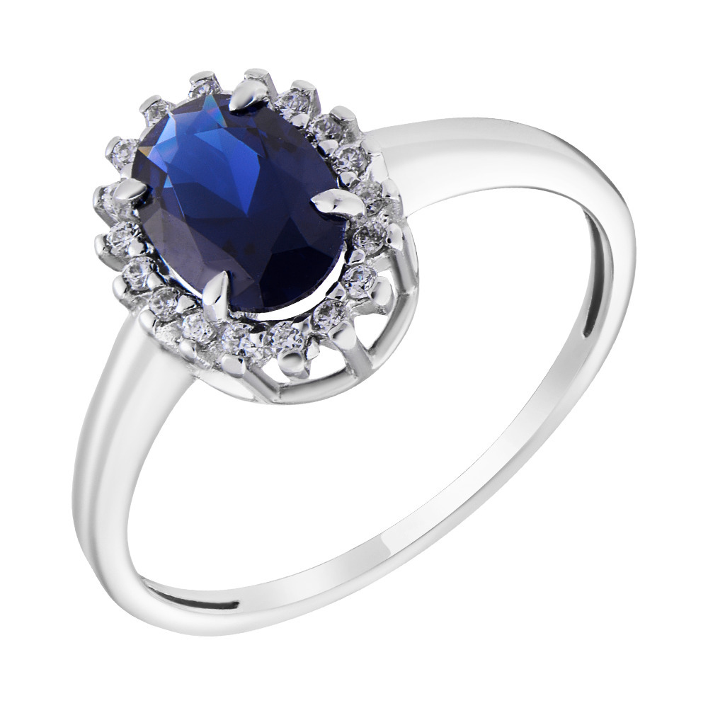 Ювелир Карат Кольцо серебряное со шпинель сапфиром и фианитами, серебро 925