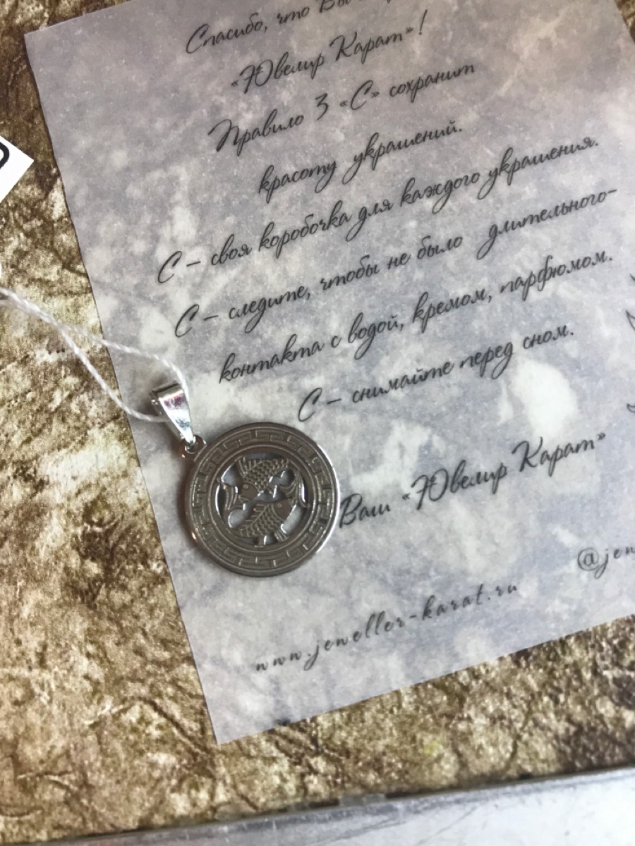 Ювелир Карат Подвеска 2034591/9 знак зодиака РЫБЫ серебро