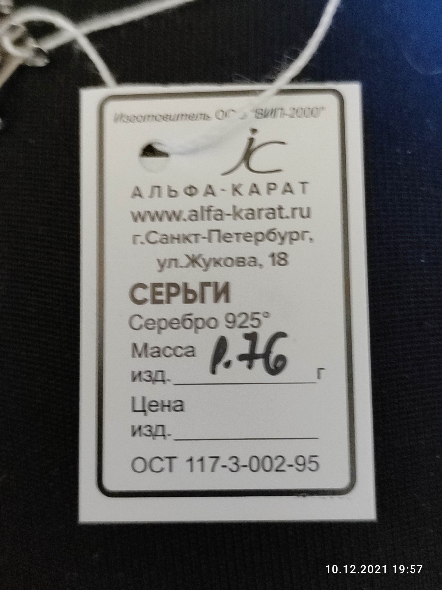 Ювелир Карат Серьги ювелирные серебряные с танцующими качающимися фианитами, серебро 925