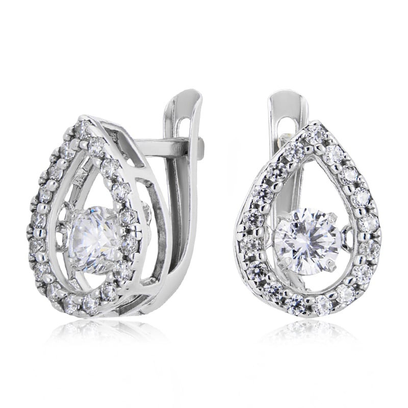 Ювелир Карат Серьги серебряные Капли с танцующими, качающимися фианитами